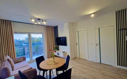 Cozy studio — 33 m², located at 14 Apartamentowa Street in Warsaw. The apartment is situated on the ground floor of a 3-story building constructed in 2009. The flat is fully furnished and equipped. Am