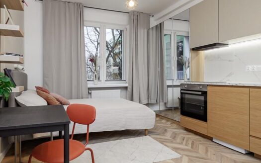 For rent a modern studio flat located on Zytnia Street in Wola District. Studio is after general renovation. The studio consists of: – kitchen annex, – bed, – separate bathroom with [more]