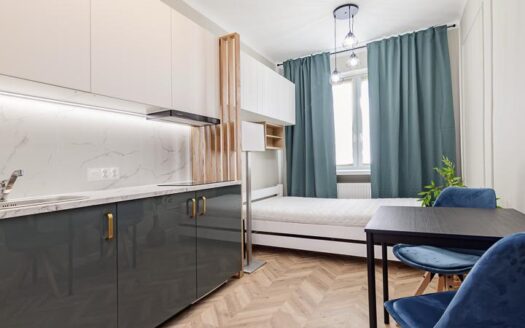 For rent new, modern studio apartment with bed in Mokotow district. The apartment is located on the 4rd floor (no lift in the building) and consists of: – living area with kitchen annex, – bed and war [more]