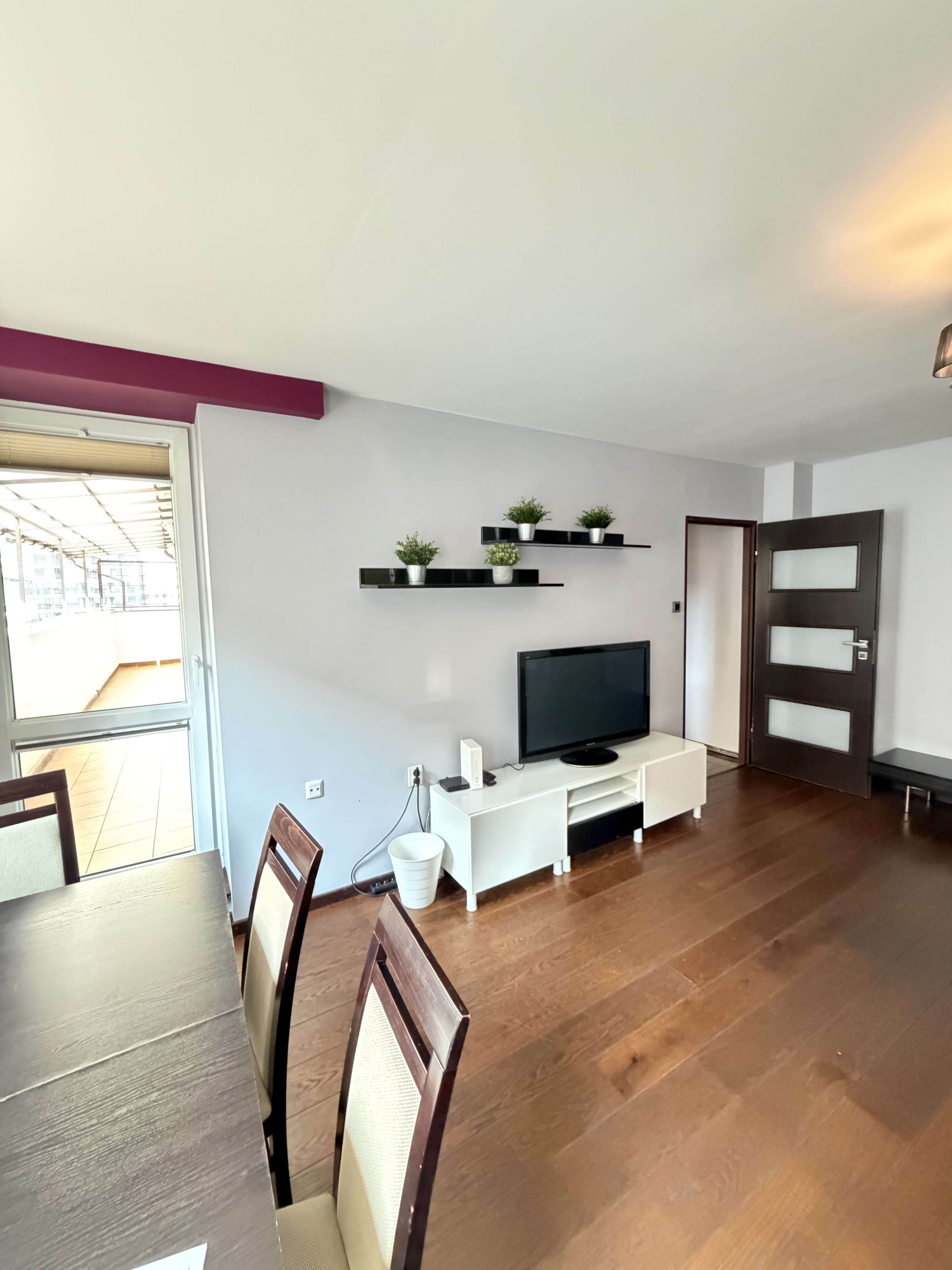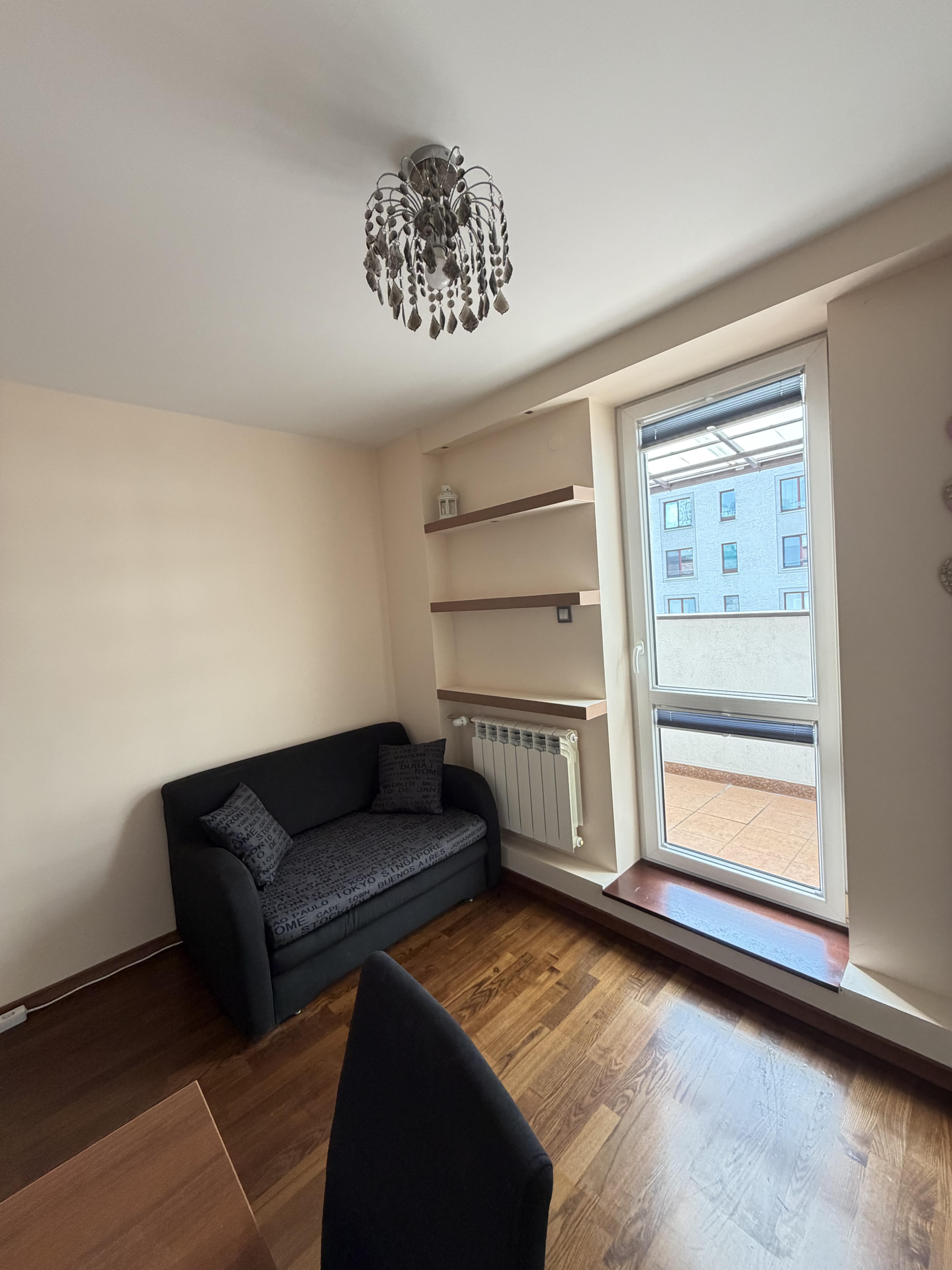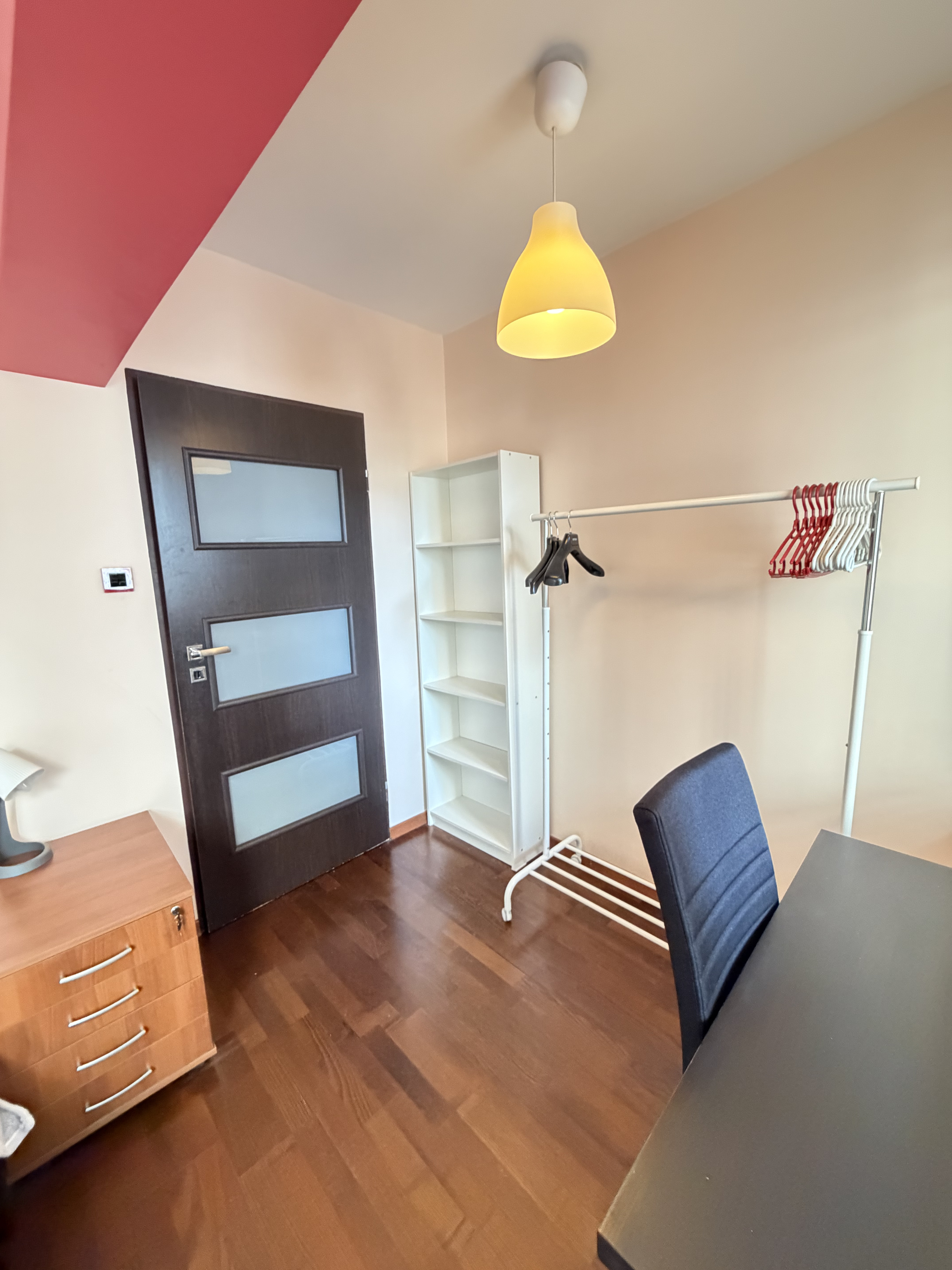 Room 3 – sofa-bed, big wardrobe, desk, chair – entrance to the terrace.