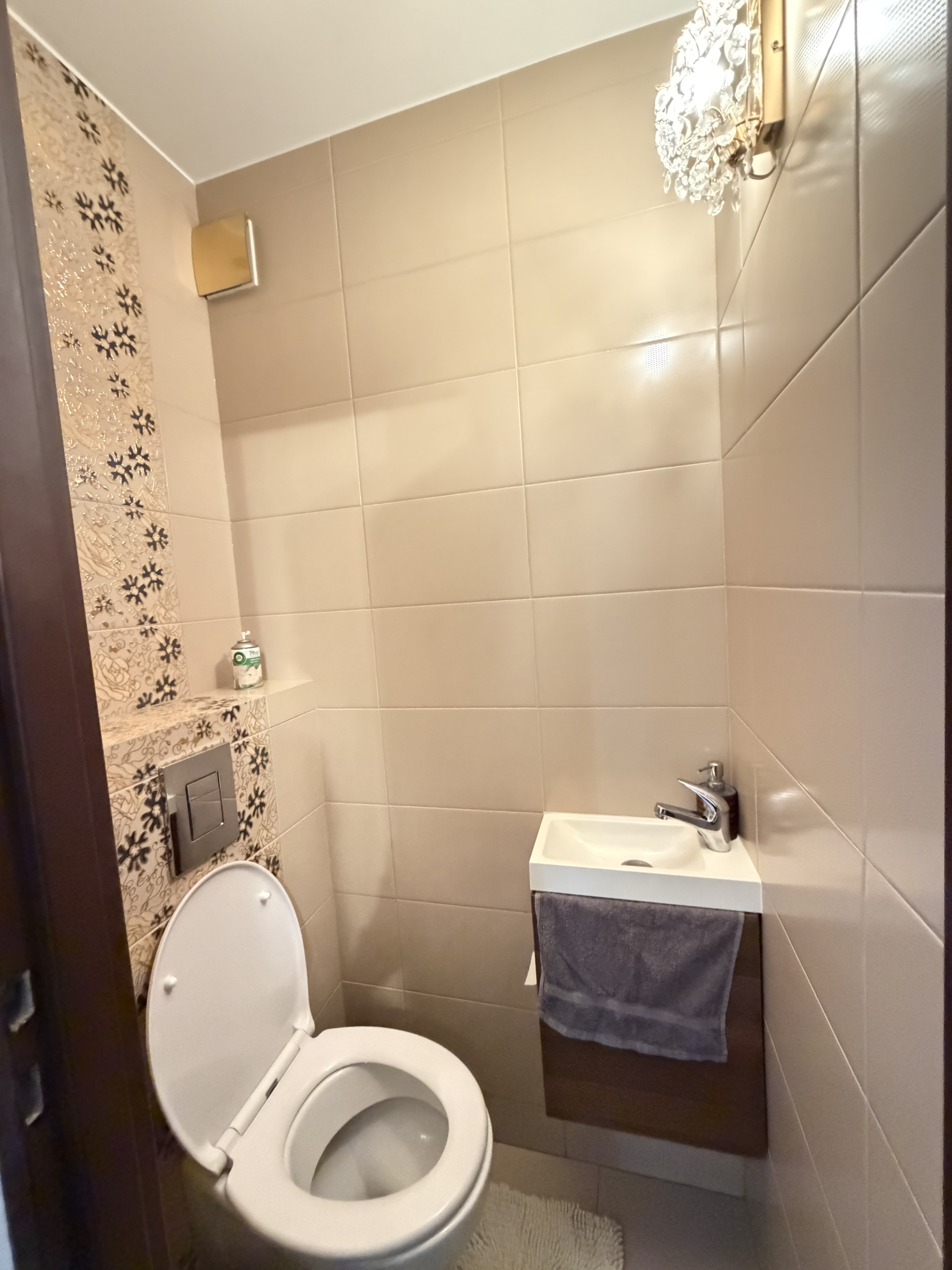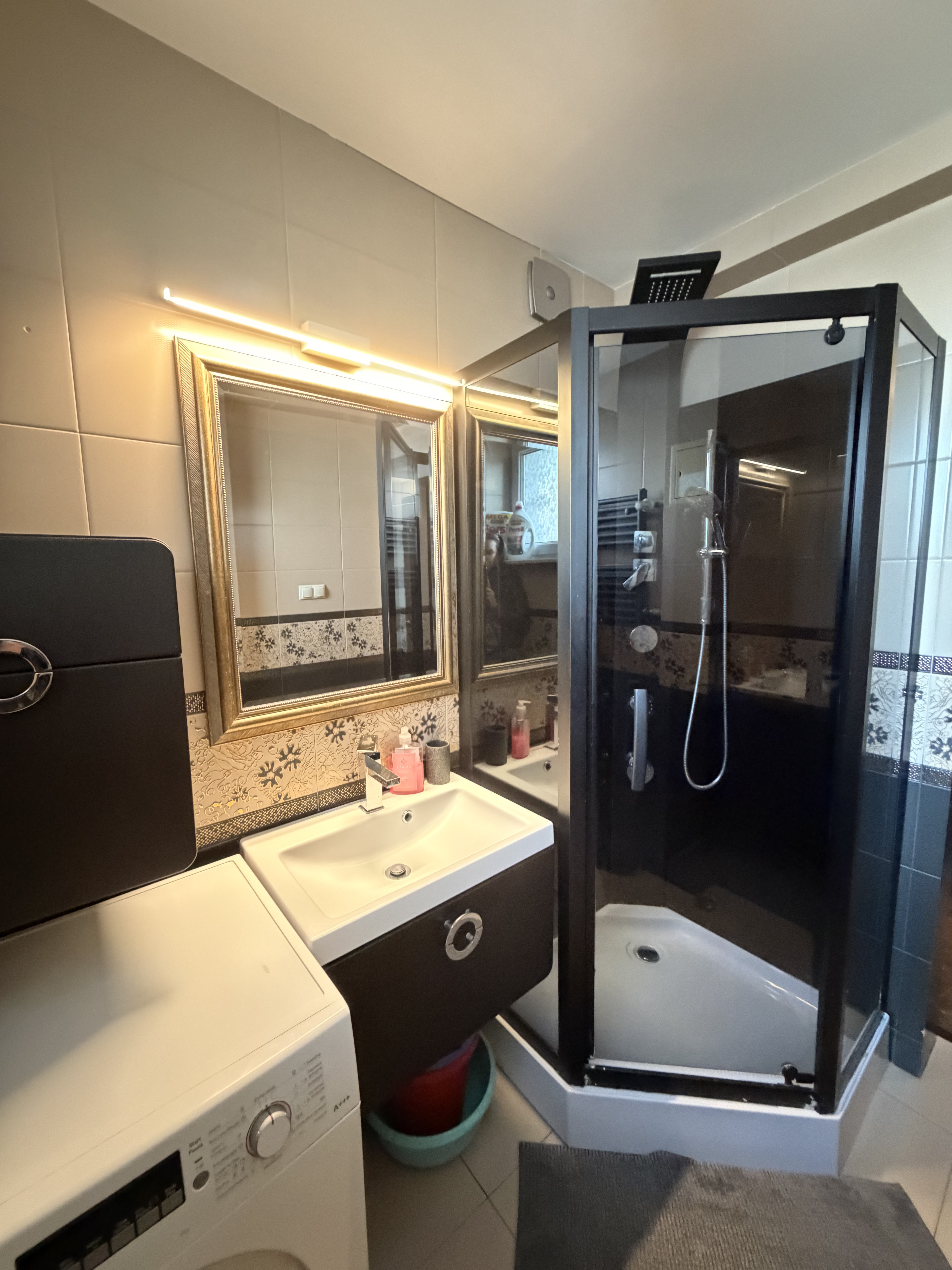 Bathroom with shower , washing machine. Separated toilet.