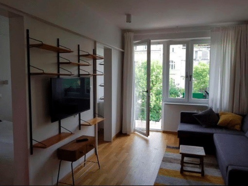Lovely 2 rooms apartment with large sunny balcony in downtown Warsaw, Hoża Street.