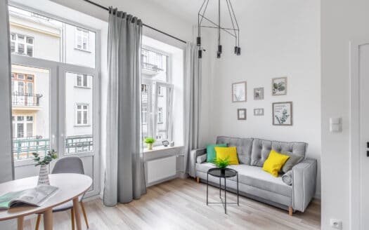 Modern apartment (67 m2) + 9m2 basement, in the quiet center of Łódź – Kołłątaja street The apartment is completely renovated on the first floor (living room + kitchen, bedroom + large wardrobe, [more]