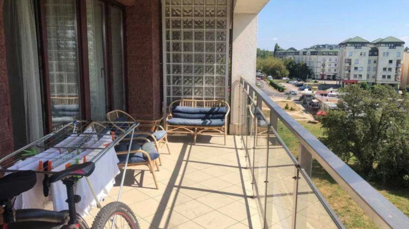 The apartment features a spacious layout, large balcony, and contemporary finishes.