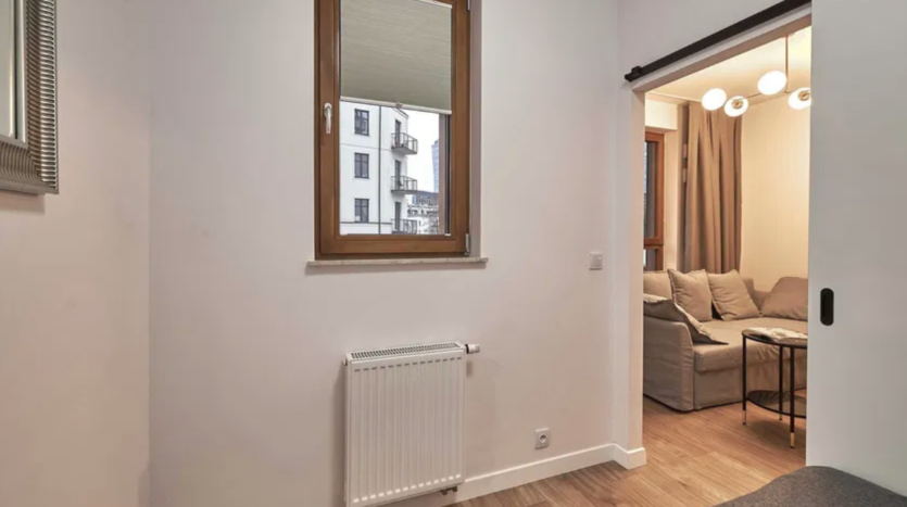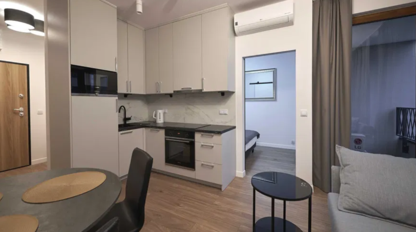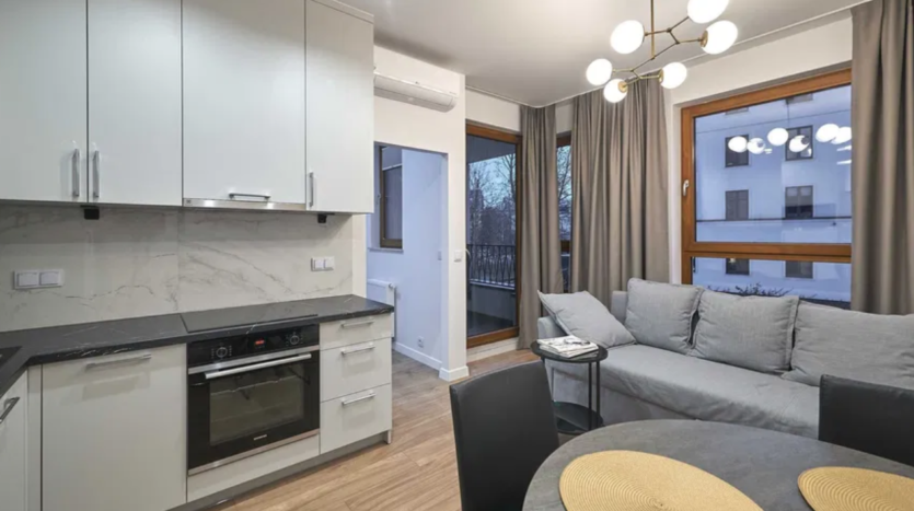 New, 2 room apartment for rent, 34 m2, Wola – 7A Karolkowa St. (living room with kitchenette, bedroom, bathroom, loggia). Located in a new luxury building from the developer (floor 1/5). Fully furnished, with A/C, high-end kitchen appliances. Finish condition – perfect. The apartment is located in a convenient location in Wola, a 5-minute walk from the Rondo Daszyńskiego metro station. Close to Warsaw city center, numerous stores, restaurants and green areas. For non-smokers only. 1 year minimum lease period.