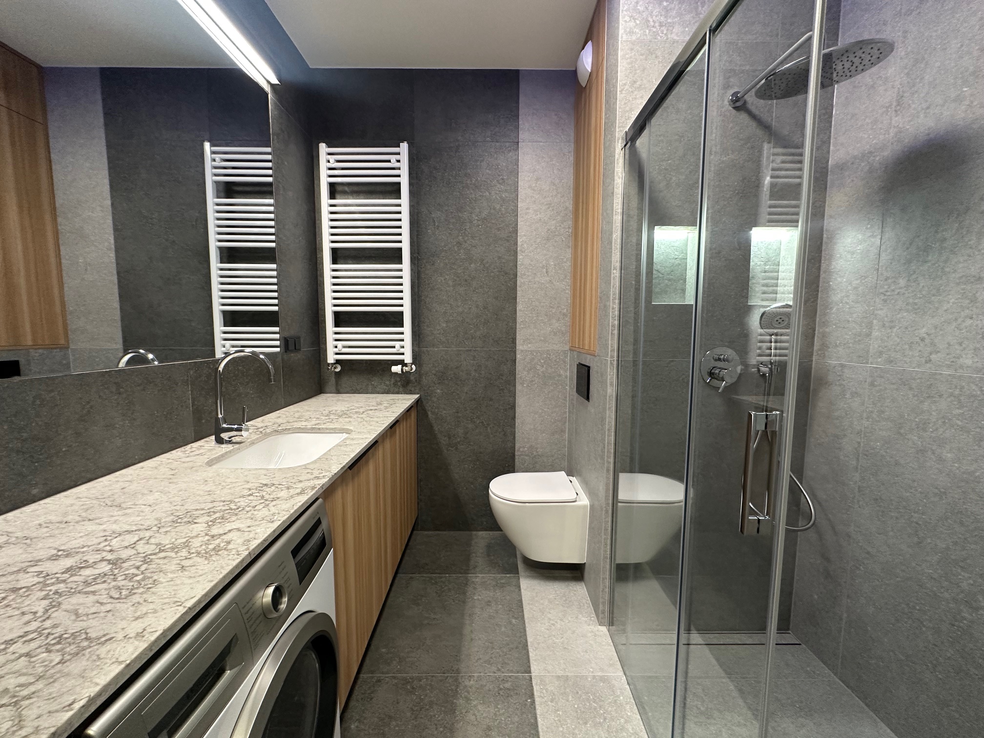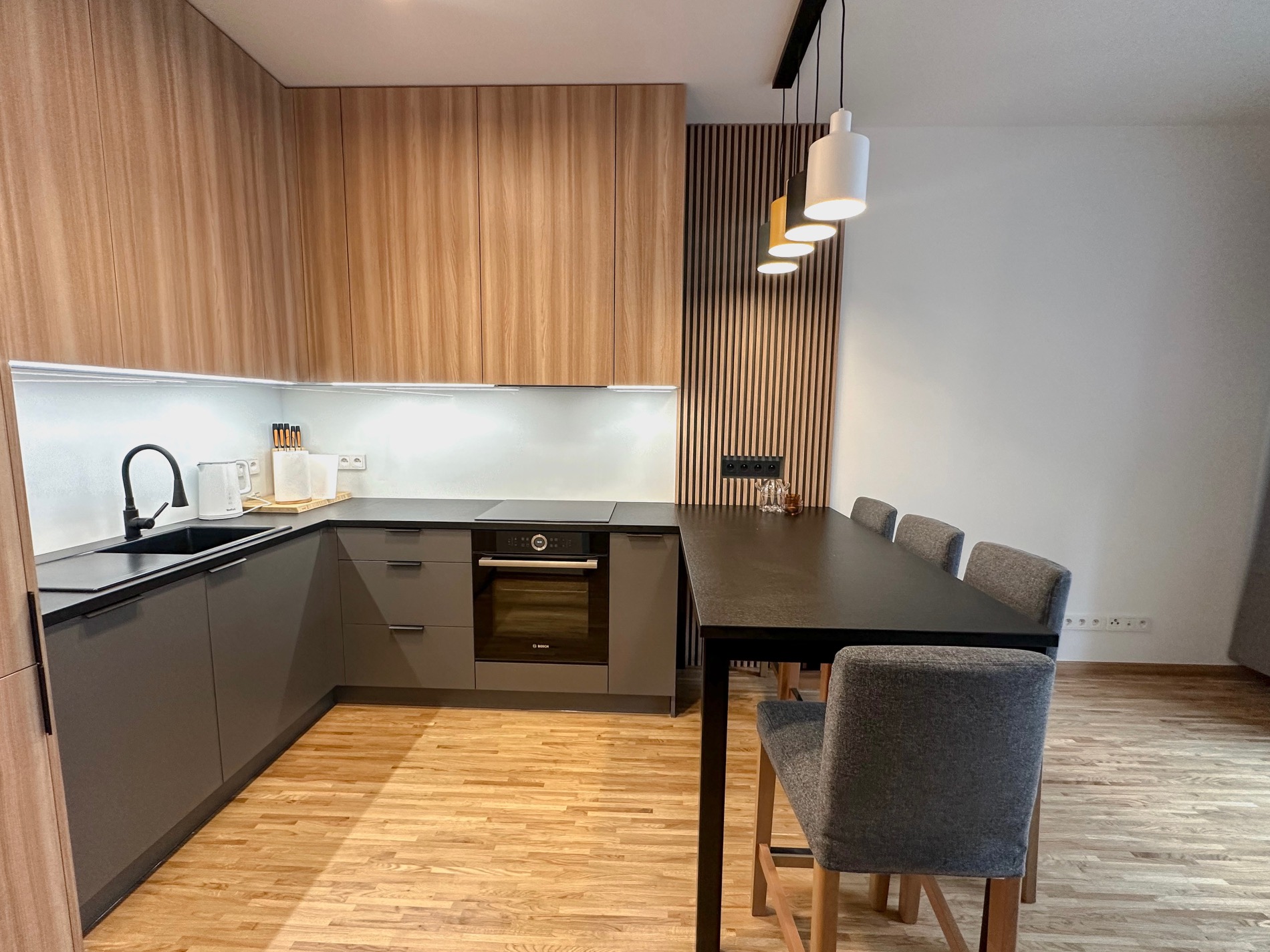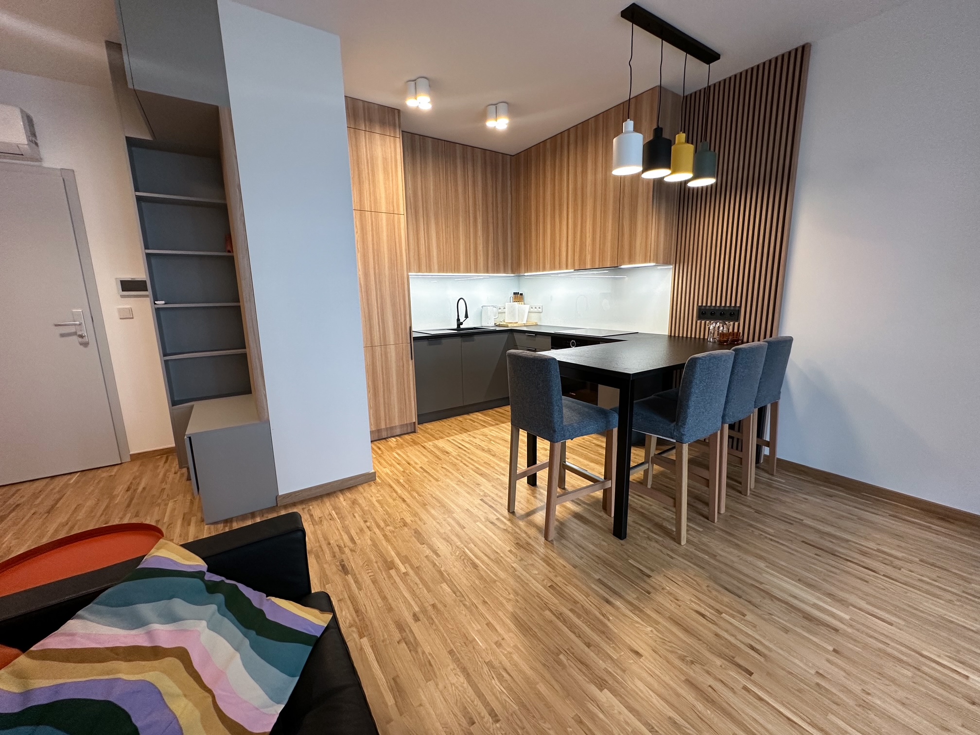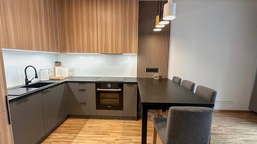 – kitchenette. Equipment: built-in fridge, freezer, oven, dishwasher, induction hob