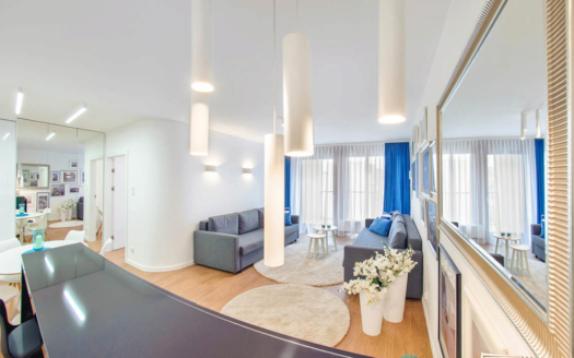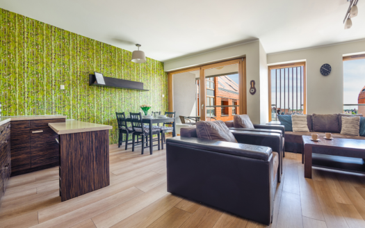 The apt. has 47 sqm and consists of living room connected with the kitchen and dining area,