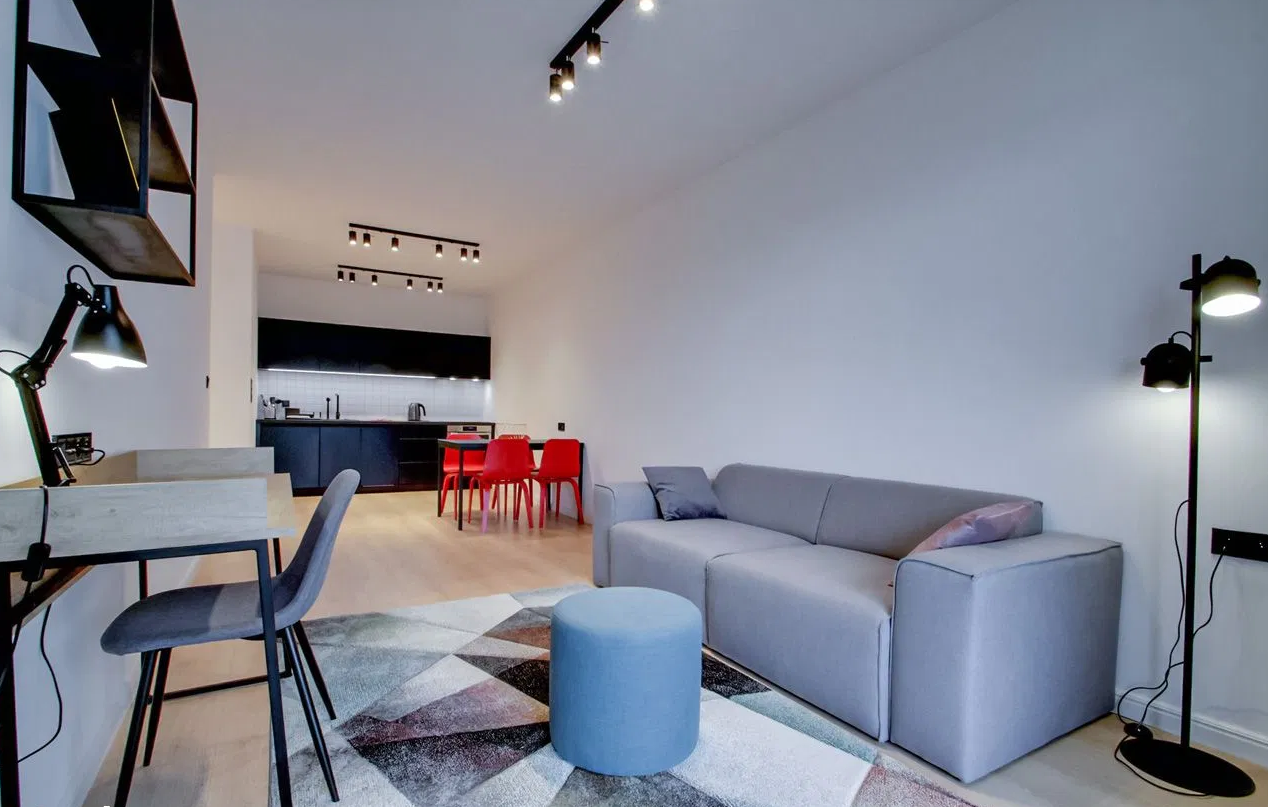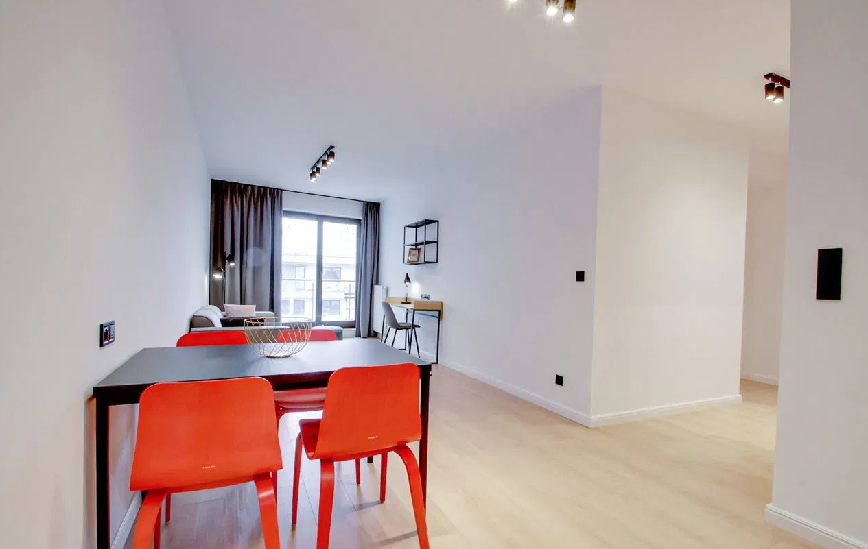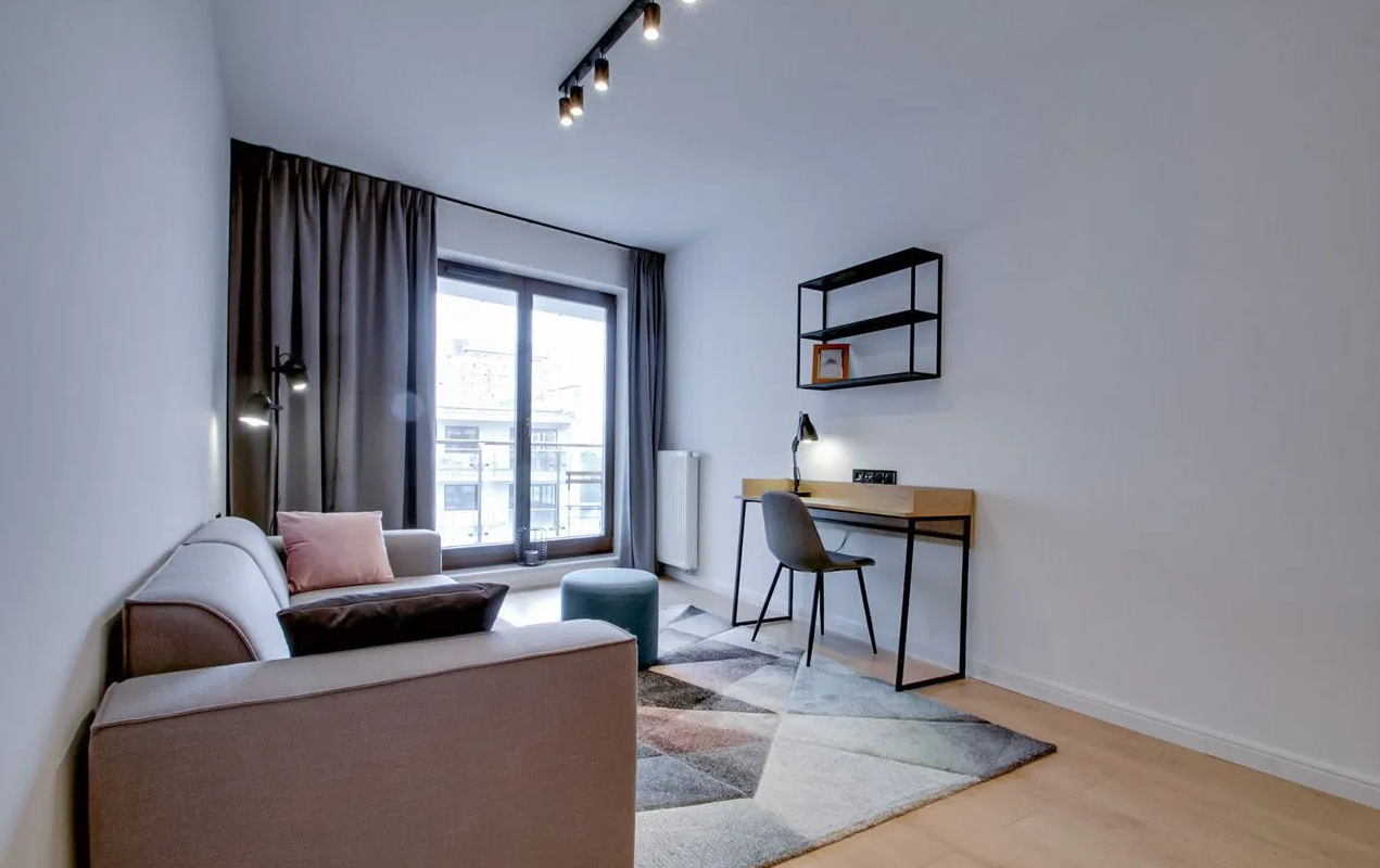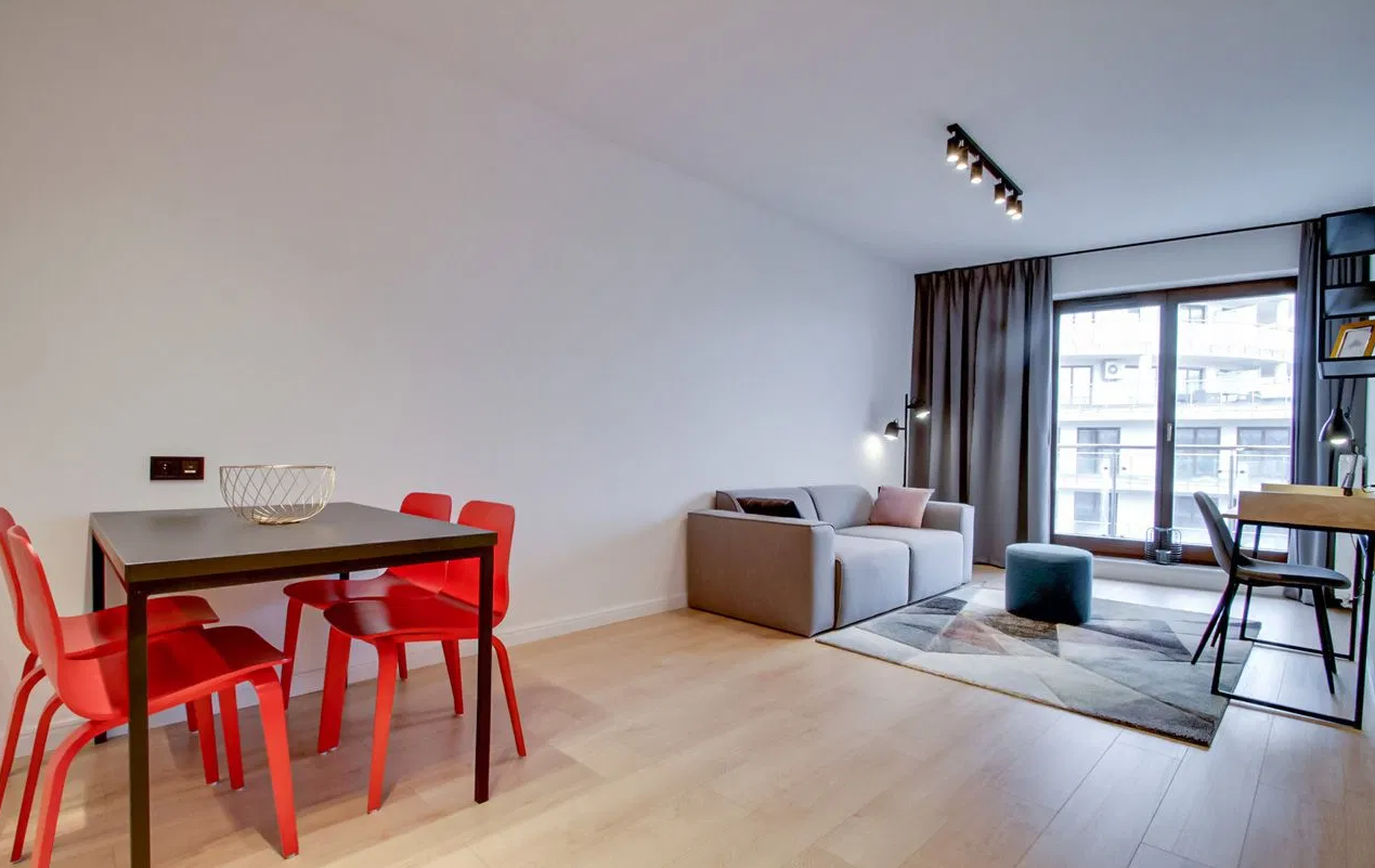 Enjoy an easy and hassle-free rental process in a modern, fully furnished apartment at Vonder Upriver, one of Warsaw’s most desirable lifestyle residences in Powiśle.