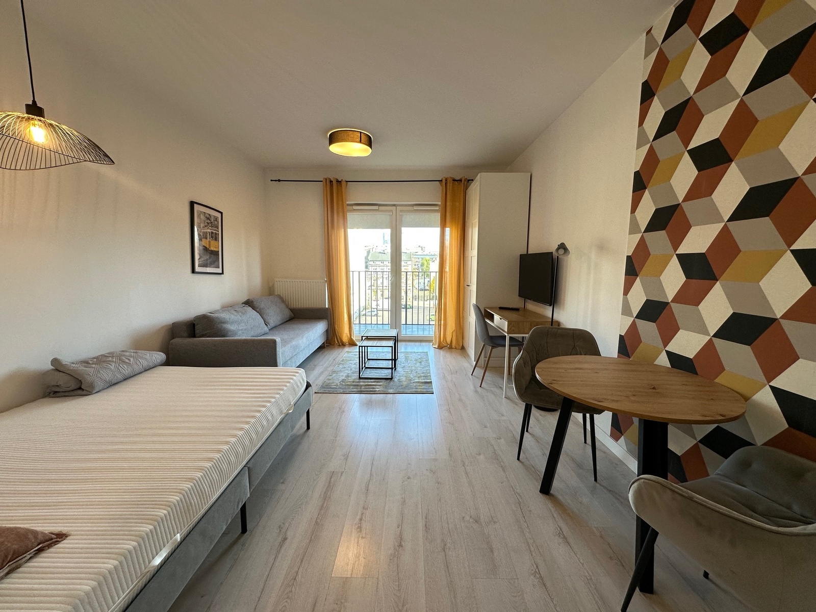 A spacious 32 m² studio apartment for rent, located on the 3rd floor of the “CENTRAL PARK” development at 147A Gdańska Street in Łódź.