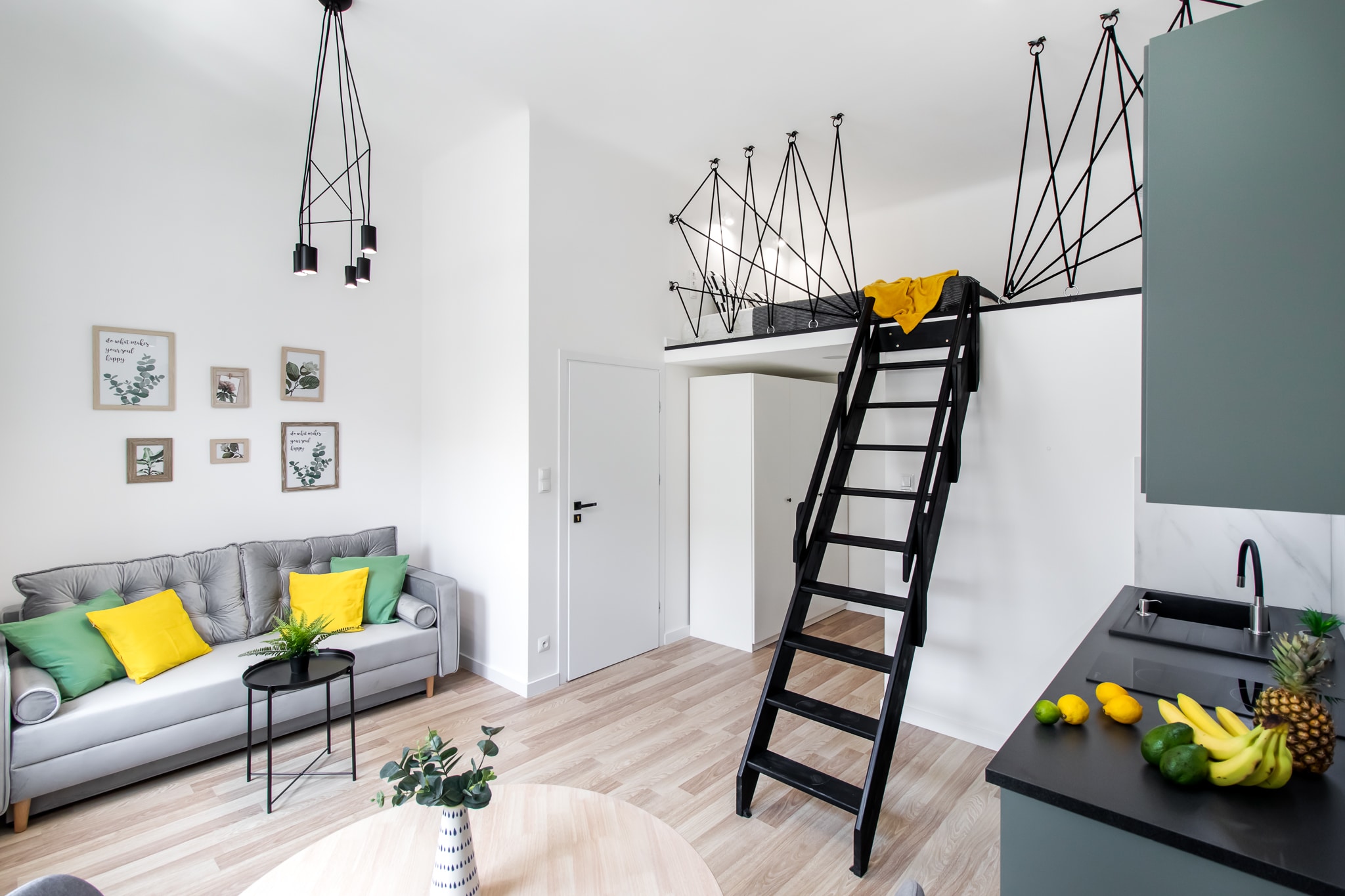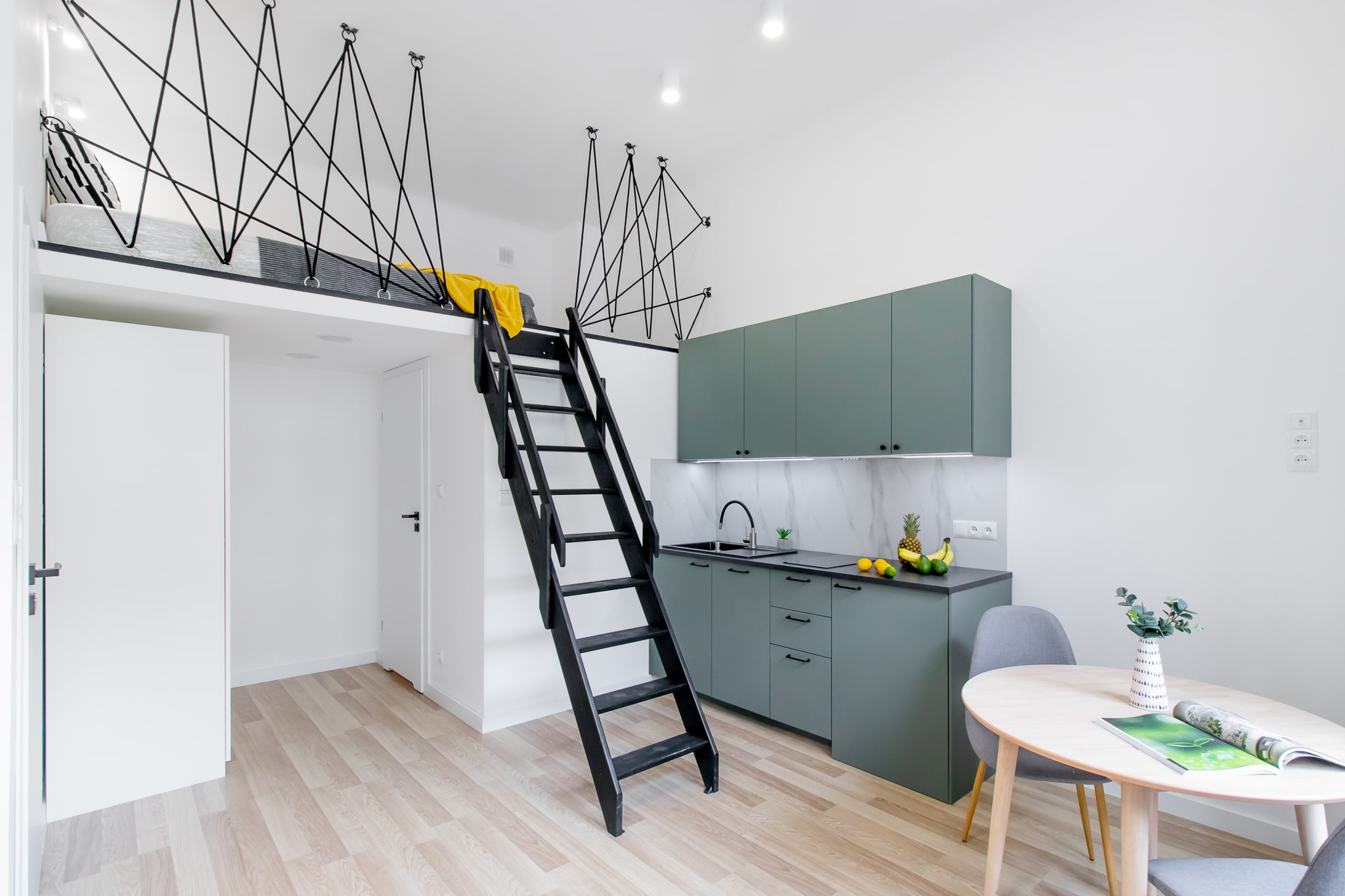 MODERN studio apartment with entresol with real bed and balcony. Lwowska Street, CITY CENTER, Warsaw.