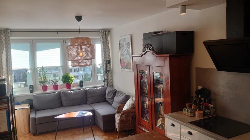 A sunny and comfortable 2-room apartment available for rent at Górnośląska 1 (8th floor, building with 3 elevators).