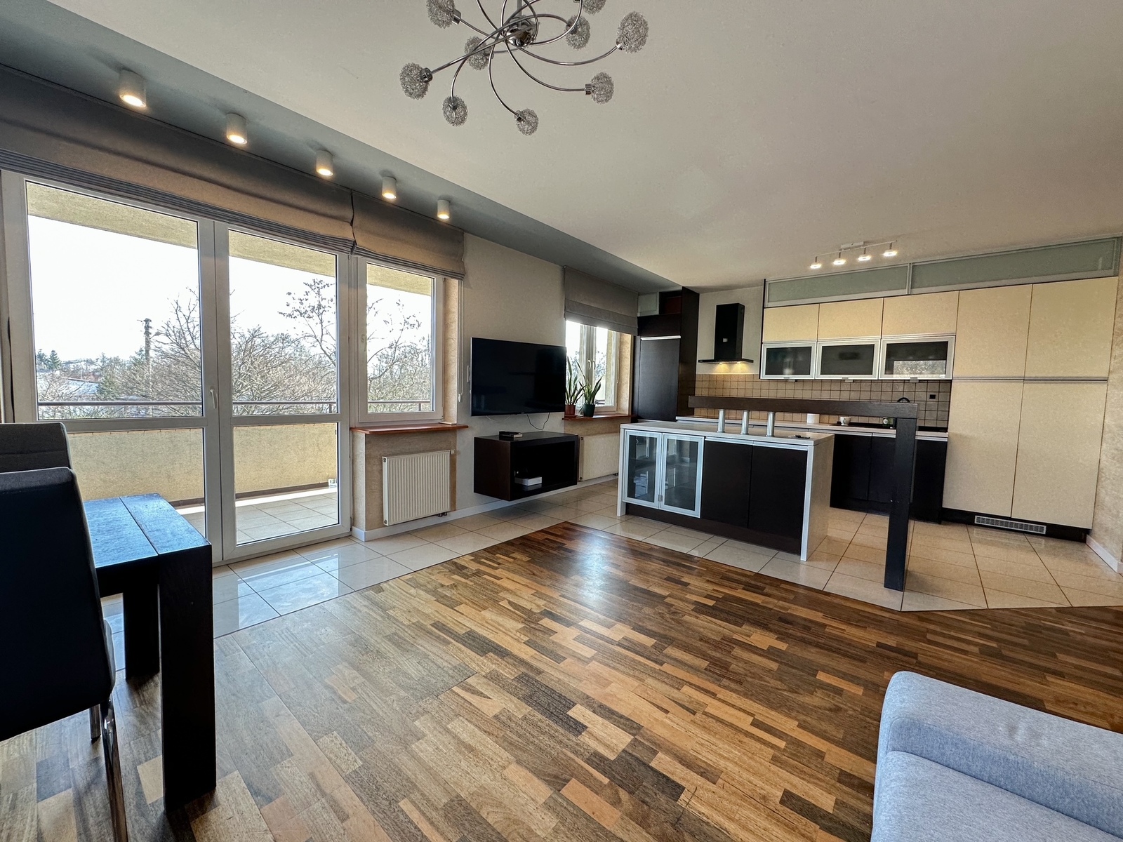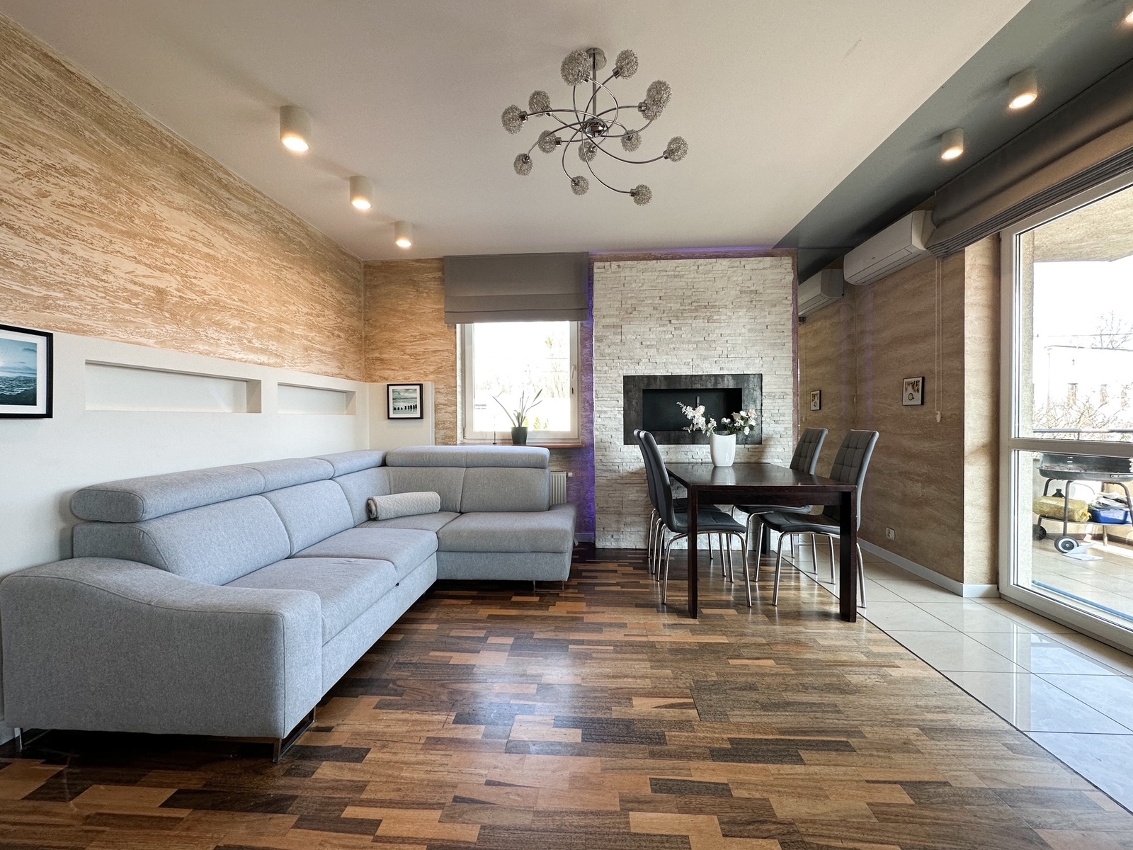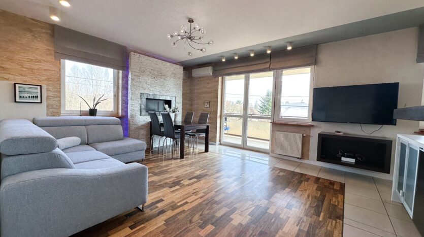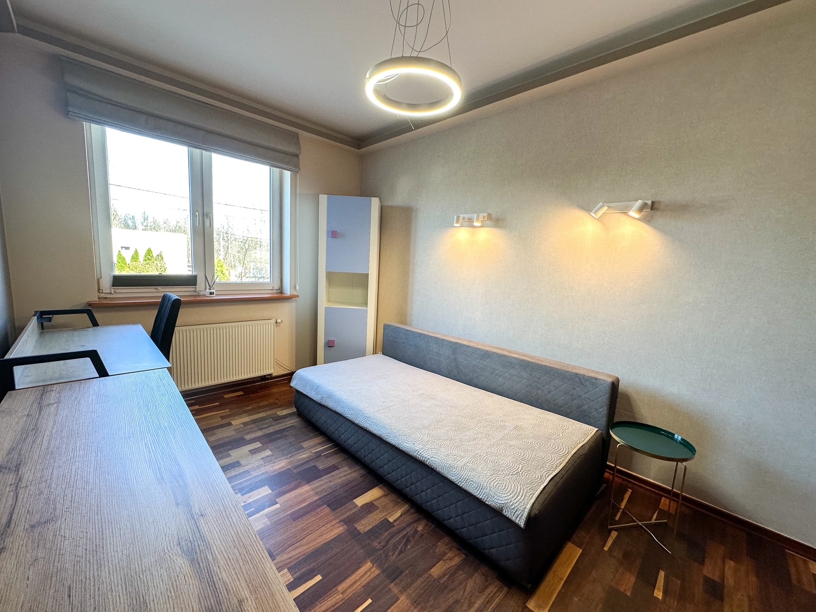A bright and spacious 3-room apartment with approximately 80 m² is available for rent, located on the first floor of a small building on Eugeniusza Street in Łódź.