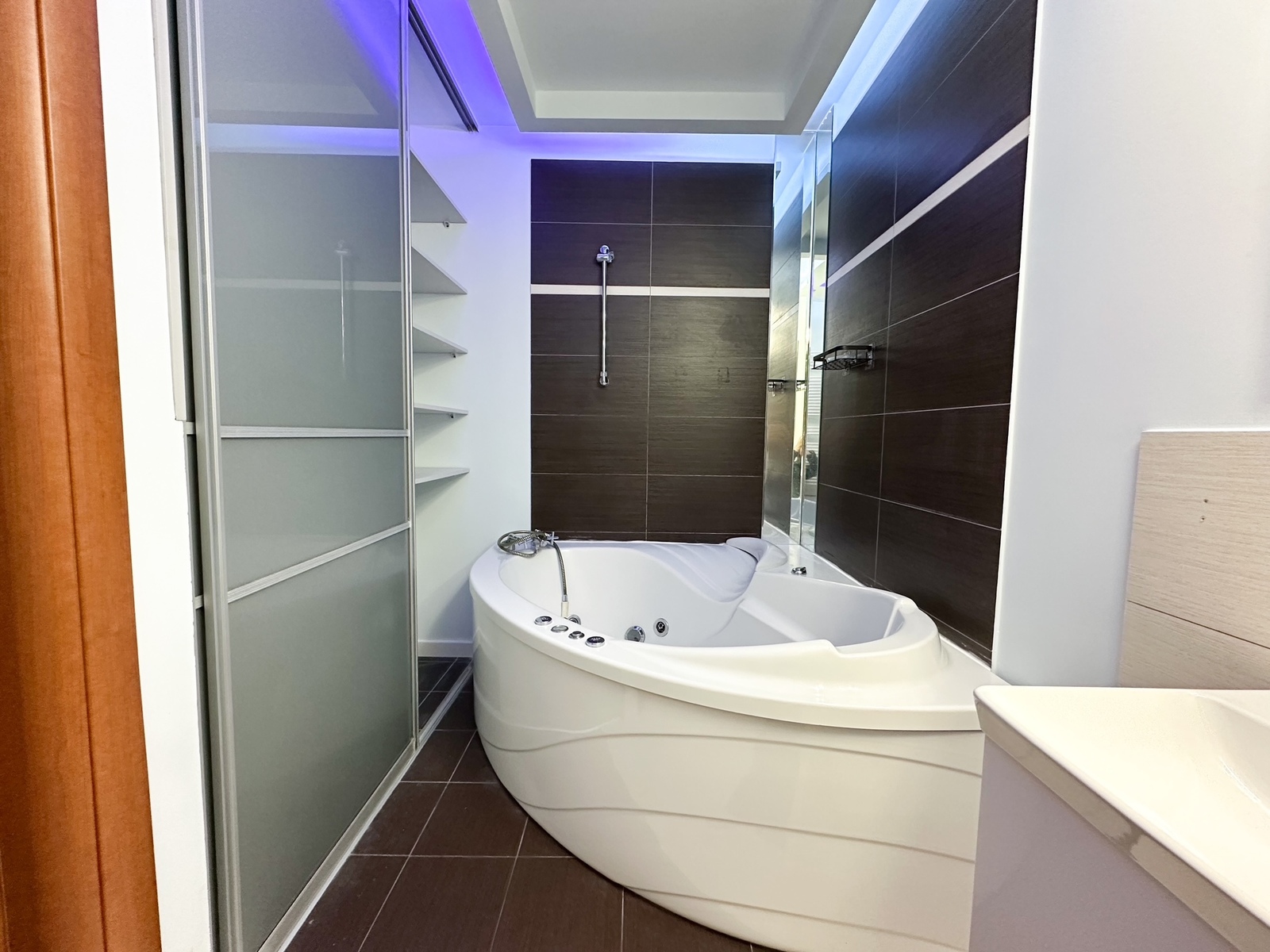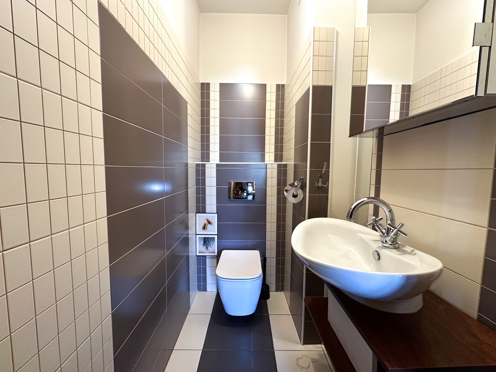 The apartment includes a large 23 m² garage, which can also be used as a storage unit due to its ample space.