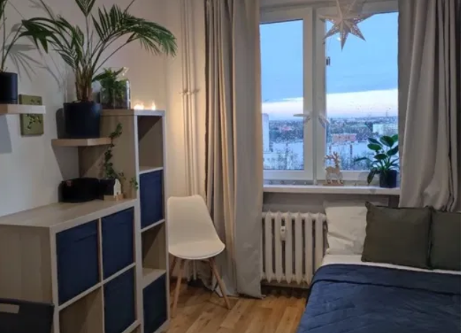 A modern studio apartment located on the 9th floor in a building with two elevators, situated at Wojciechowskiego 35, Ursus.