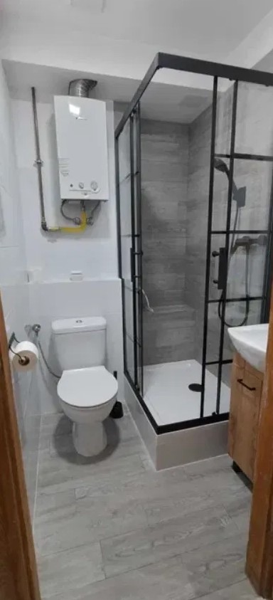 The bathroom has undergone a complete renovation and features: