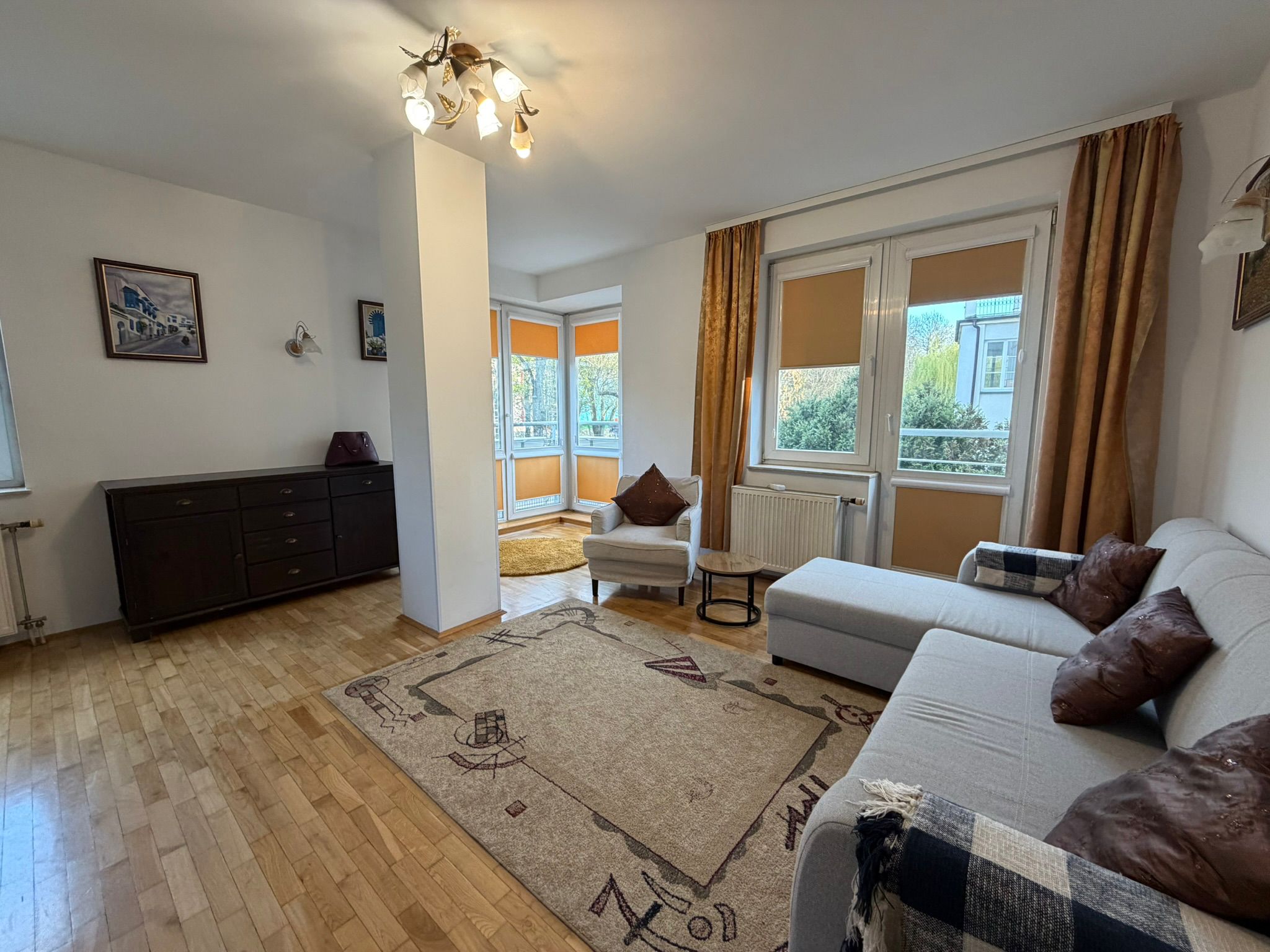 The apartment is located in Saska Kępa area, known for its greenery, peaceful atmosphere, and excellent connectivity to the city center. Nearby, you will find numerous cafes, restaurants, shops, and walking areas, making it a perfect place for comfortable city living.