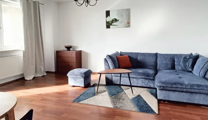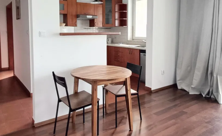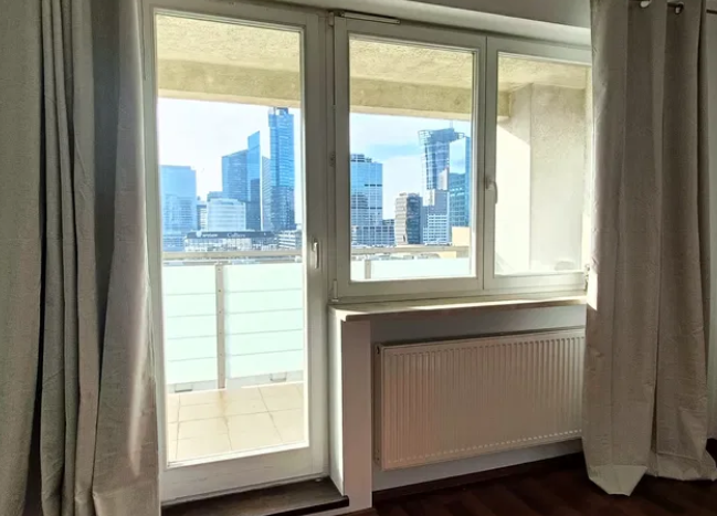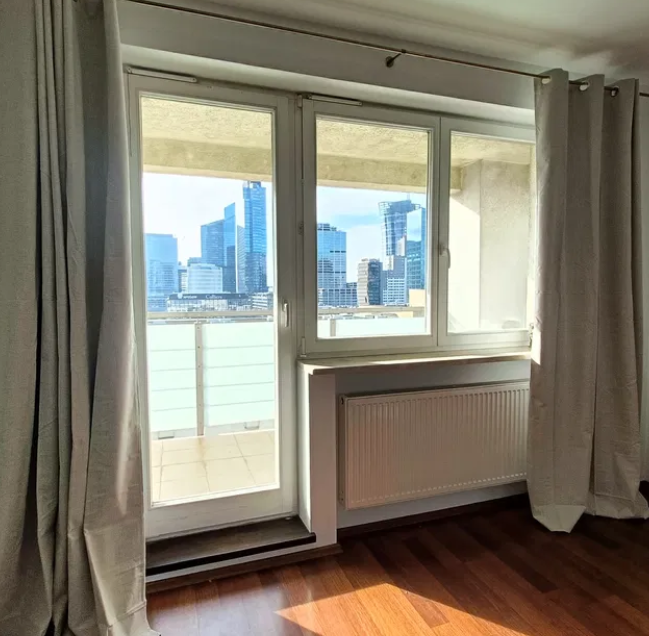 For rent comfortable 60 m² apartment at Sienna Street. Monitored building. The apartment consists of a large living room, a semi-open kitchen, bedroom, bathroom, hallway, and a large walk-in closet. 13th floor, balcony with a view of the Warsaw skyline. Access to the balcony from both the living room and the bedroom. Amenities: