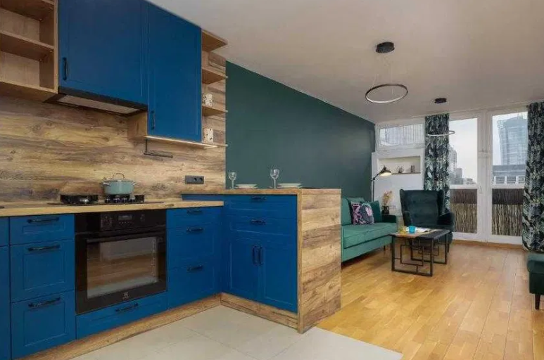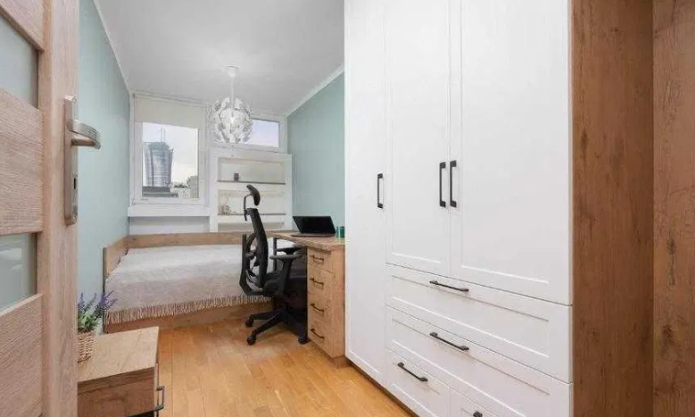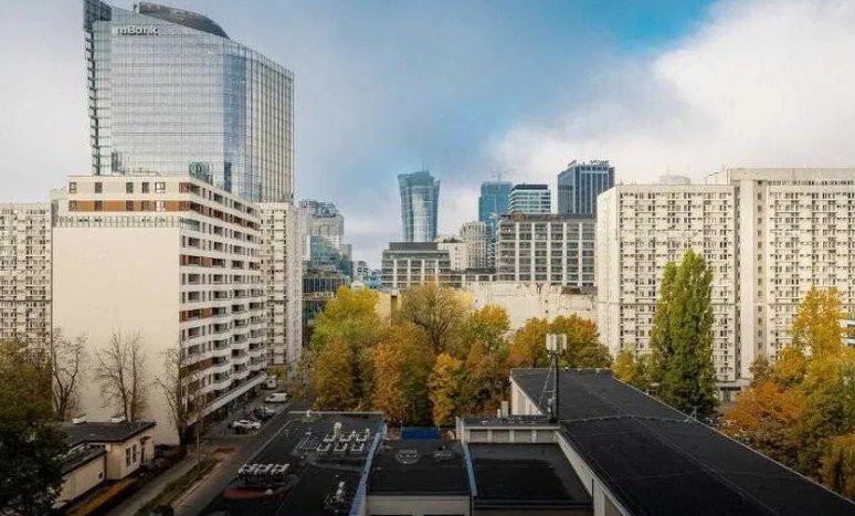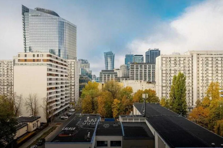 The apartment is located in the center of Warsaw, Rondo ONZ metro station. Nearby there are shops, service points, and restaurants.