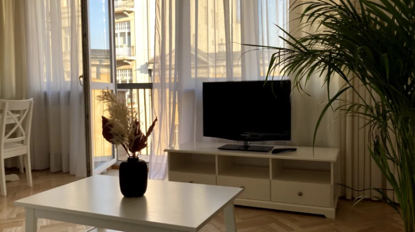 The apartment is located in the very heart of Warsaw, surrounded by historic tenement houses, trendy restaurants, cafes, and boutiques.Just a few minutes’ walk from Marszałkowska Street, Constitution Square, or Politechnika metro station.Excellent transport links – buses, trams, and the metro provide quick access to every part of the city.