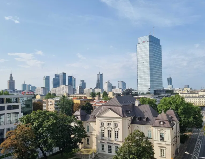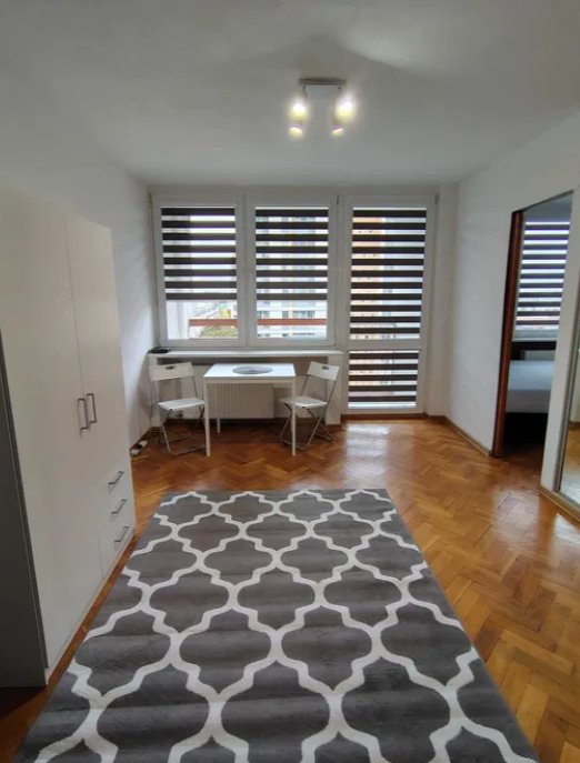 For rent 2-room apartment with a balcony, 35m2, on Aleja Solidarności, near Ratusz Arsenał Metro station and Plac Bankowy. Located on the 7th floor with an elevator. The apartment has been refreshed after the previous tenants. The living room features a sofa bed, a table, and two wardrobes. There is a possibility to set up a TV with Smart TV options. The smaller room has a double bed and a spacious chest of drawers. The kitchen is equipped with a refrigerator with a freezer and a gas stove with an oven. A new vacuum cleaner is available. The bathroom has a shower with a rain showerhead and a washing machine. The apartment has a balcony with a beautiful view of central Warsaw. There is also the option to use a storage room. The apartment is bright and sunny. Attractive location, convenient transport connections. Nearby are shops, restaurants, Krasiński Park, the Old Town, and the National Theatre.The rental price includes fiber-optic internet.