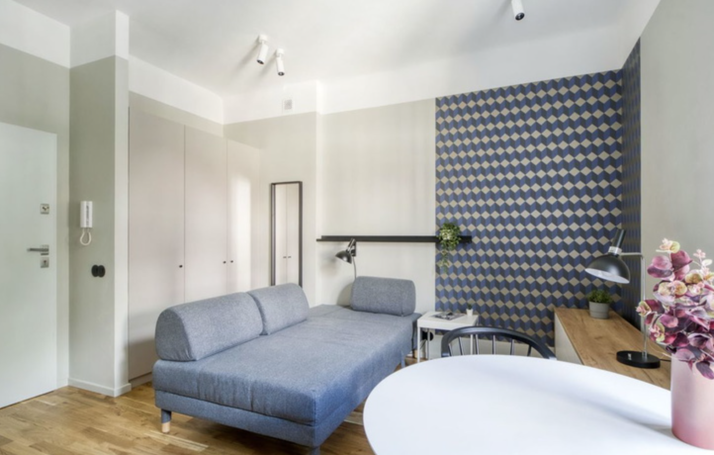 Studio 24m2 with a great ambience in a preWWII building located in Stara Ochota (historical district). The building dates from 1928 and surrounds a beautiful, green patio, overlooked by the apartment’s windows – apartment is very quiet.