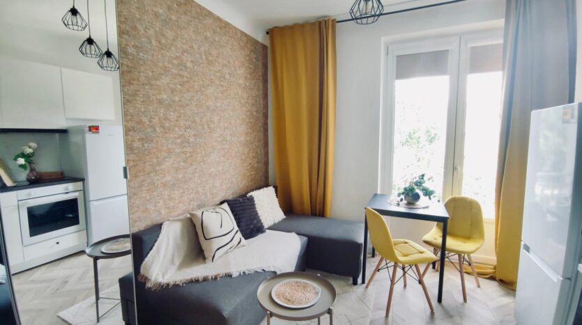 For rent a studio apartment located on Szczęśliwicka Street. The apartment is designed in modern style and consists of:
