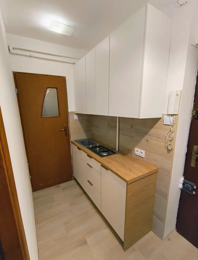 A cozy, well-maintained and spotlessly clean studio apartment, freshly renovated and ready for its first tenant after refurbishment.