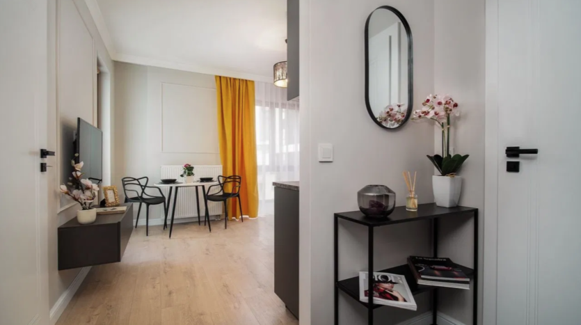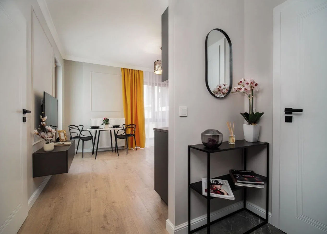 In the apartment you can find a bedroom with a big bed and huge wardrobe. Smart TV, full equipment AGD.