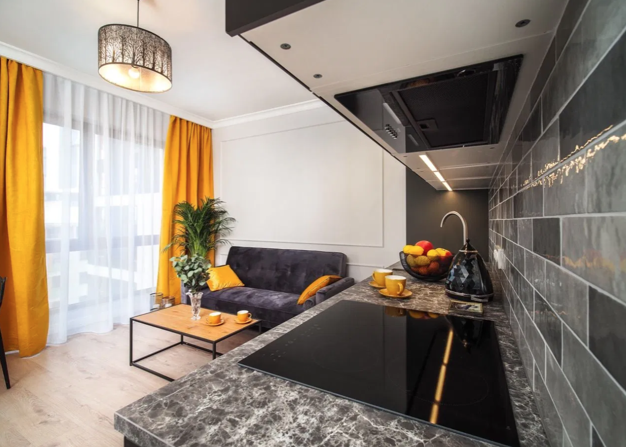 Comfort, functionality, perfect equipment and expensive materials will make you feel exceptional. Thanks to the big windows there is a lot of light which guarantees a beautiful view at the Warsaw skyscrapers.