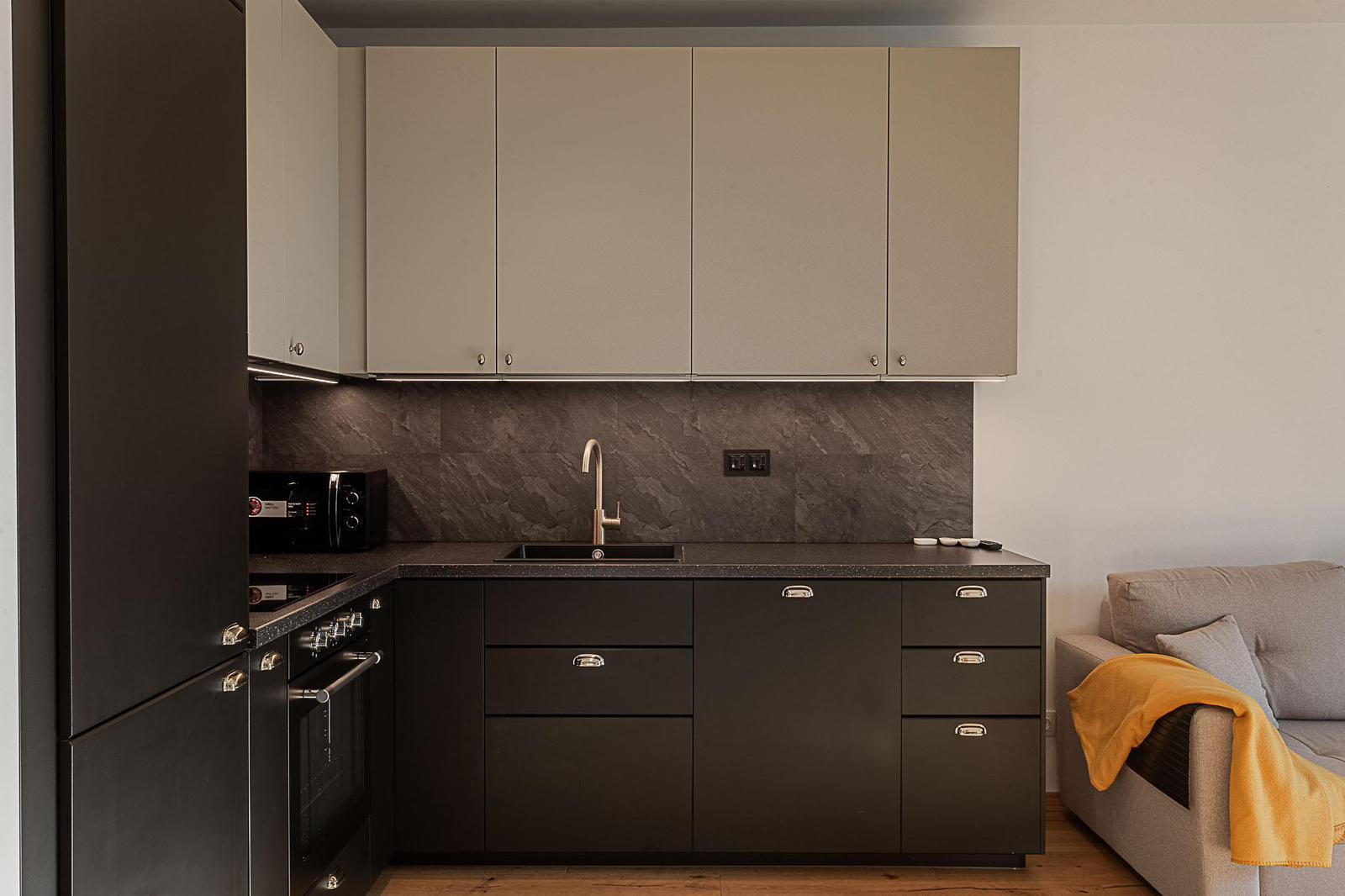 A spacious living room with a fully equipped kitchen (modern appliances included),
