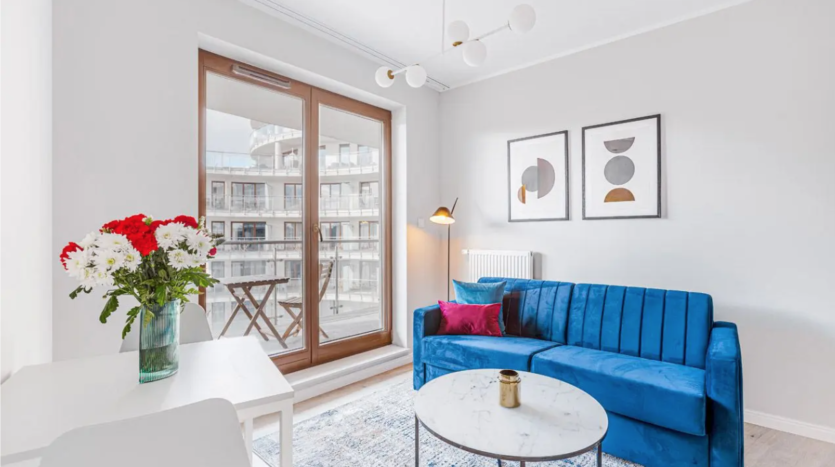 For rent a 2-room flat located in Solec 24 Street. The apartment has thoughtfully designed space, has a living room with kitchen annex, bathroom and a bedroom.The kitchen is fully equipped with a fridge, oven, induction hob, and plenty of storage. Additionally there is a balcony.