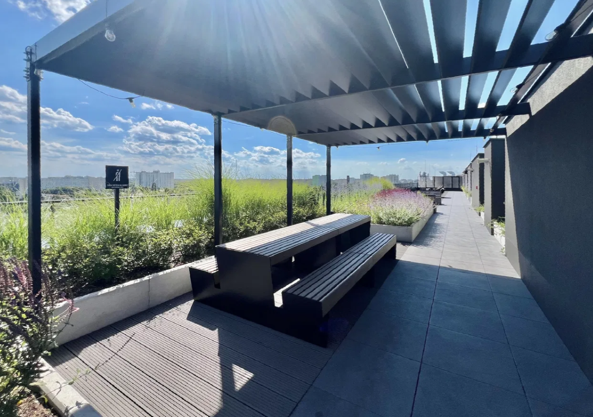 The building is equipped with a lobby with a concierge function, 24-hour security, monitoring, a “co-working” area for residents and numerous terraces on the roof and first floor.