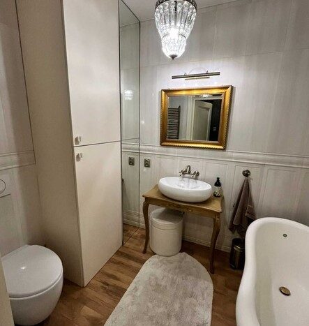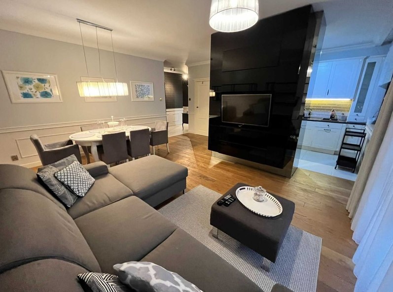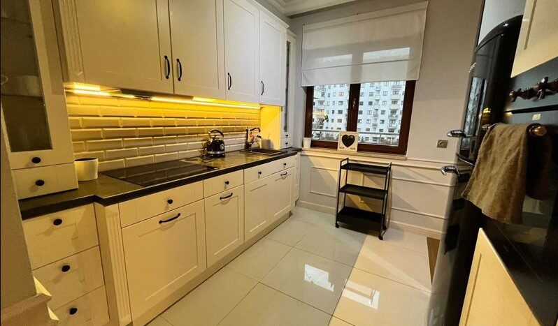 Situated in a well-connected part of Wola, the apartment provides easy access to public transport, ensuring fast travel to the city center and other districts of Warsaw.