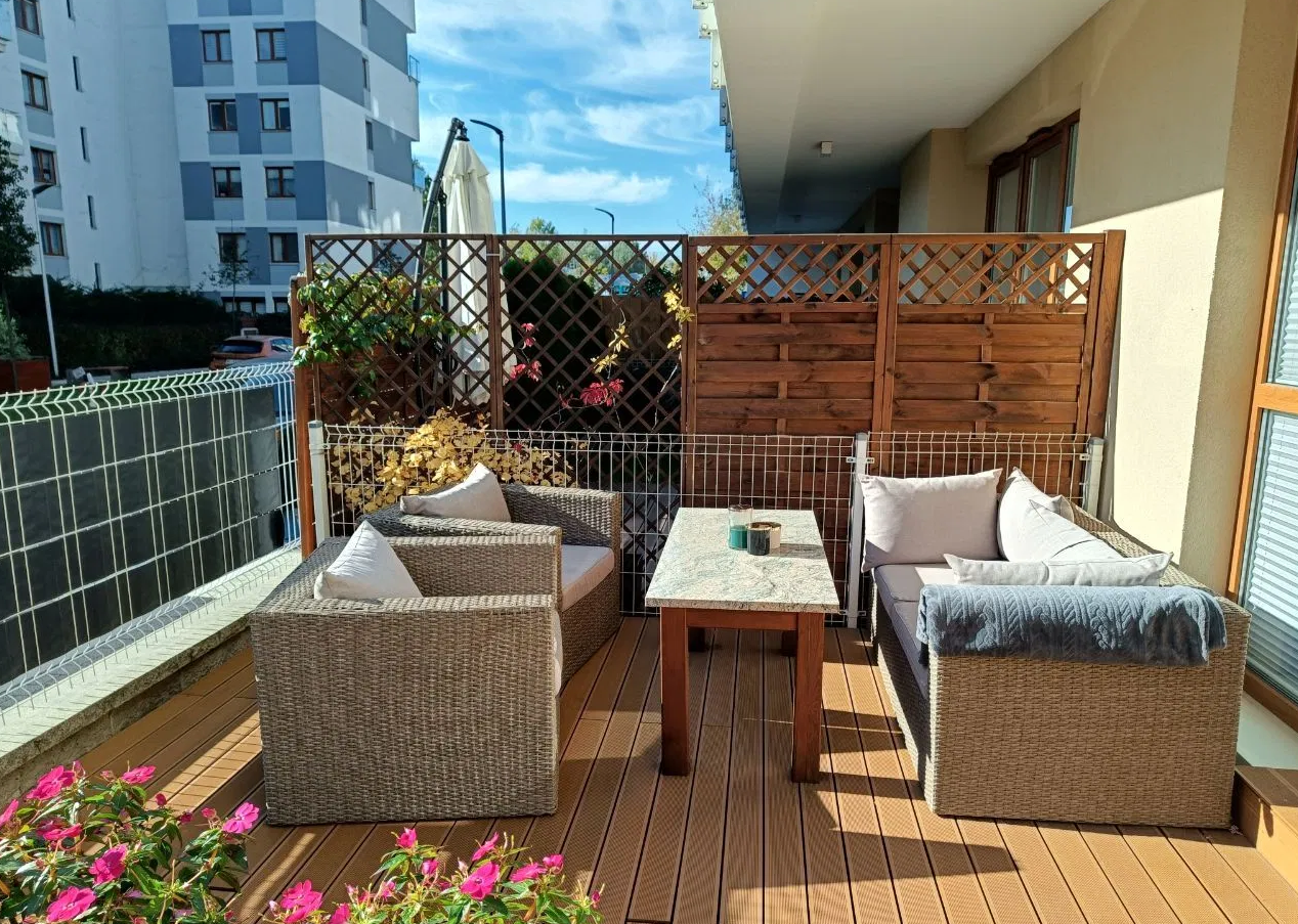 A rare feature in Warsaw apartments that offers true indoor-outdoor living.