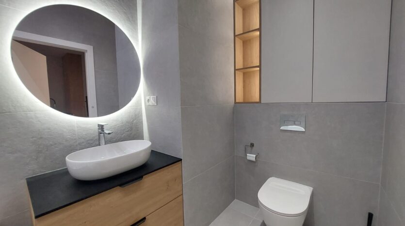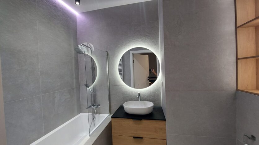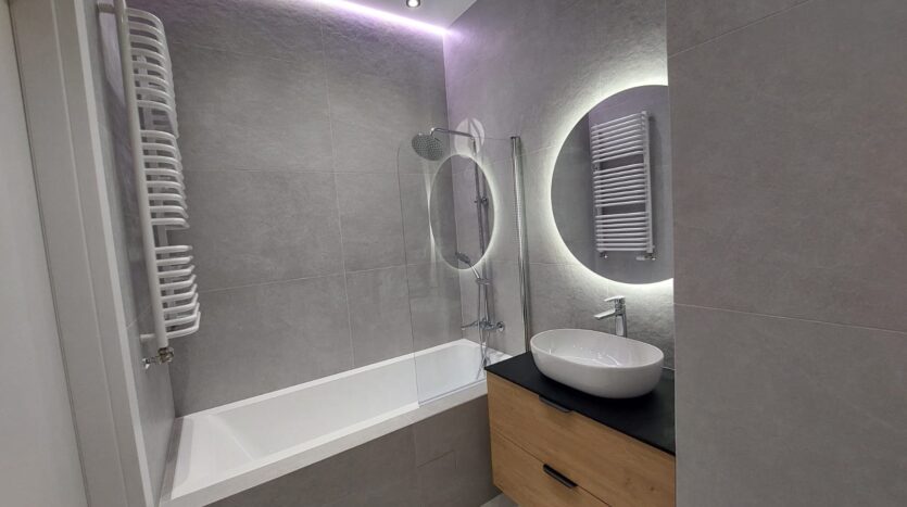 For rent: a cozy, fully furnished apartment located at Redutowa 11 in the Wola district of Warsaw. The apartment has been completely renovated, is brand new, and is waiting for its first tenant. The apartment is in a modern style, has a lot of storage place and is spacious.