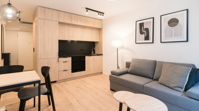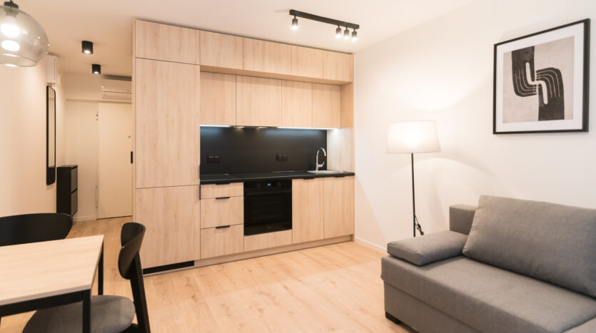New and modern studio apartment located on Pohoskiego Street in Mokotow district.