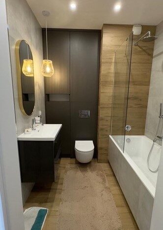 A modern 32.5 m² studio apartment available for rent, located at Fort Wola 14.