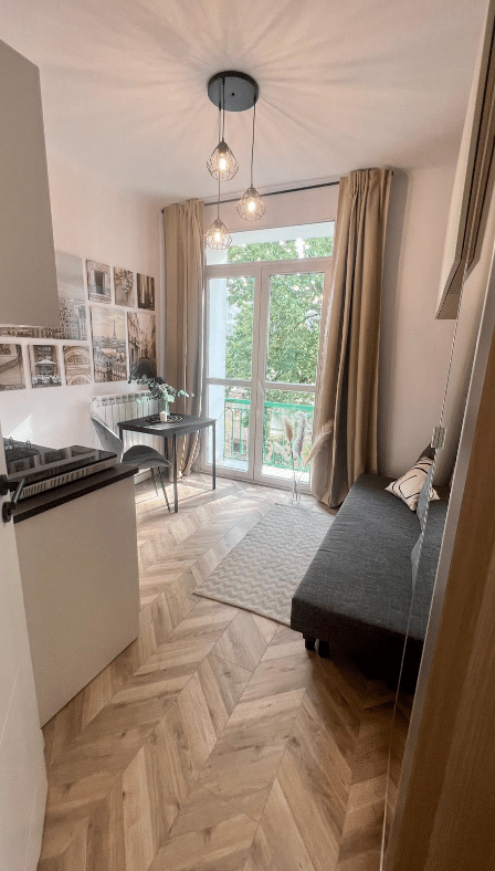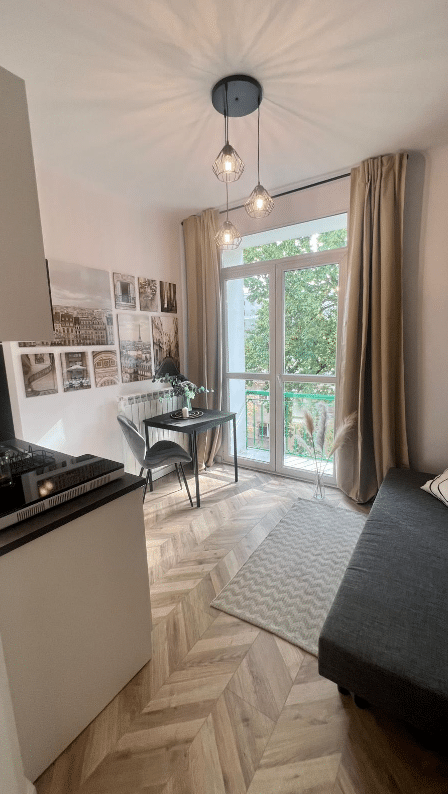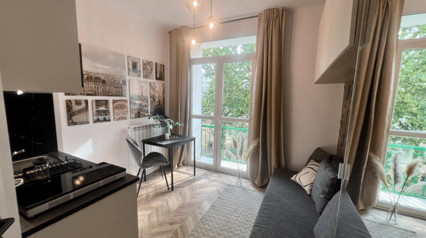 For rent a modern studio flat located on Siewierska Street in Ochota District.
