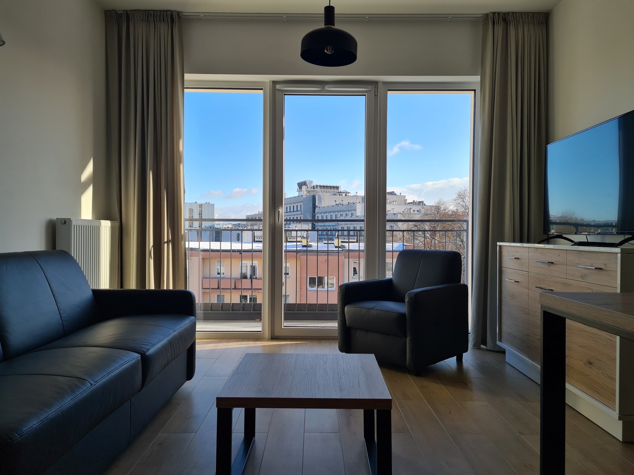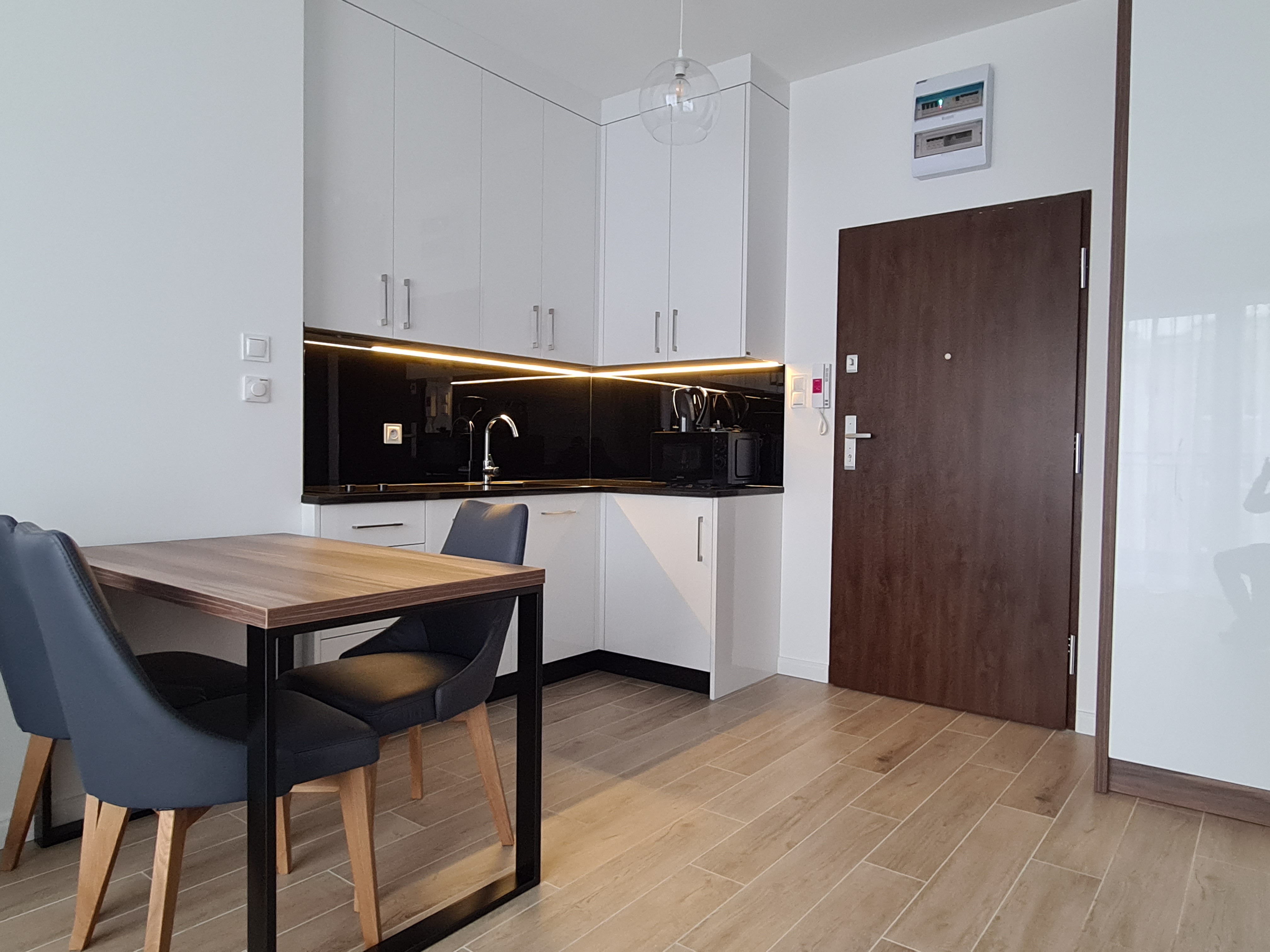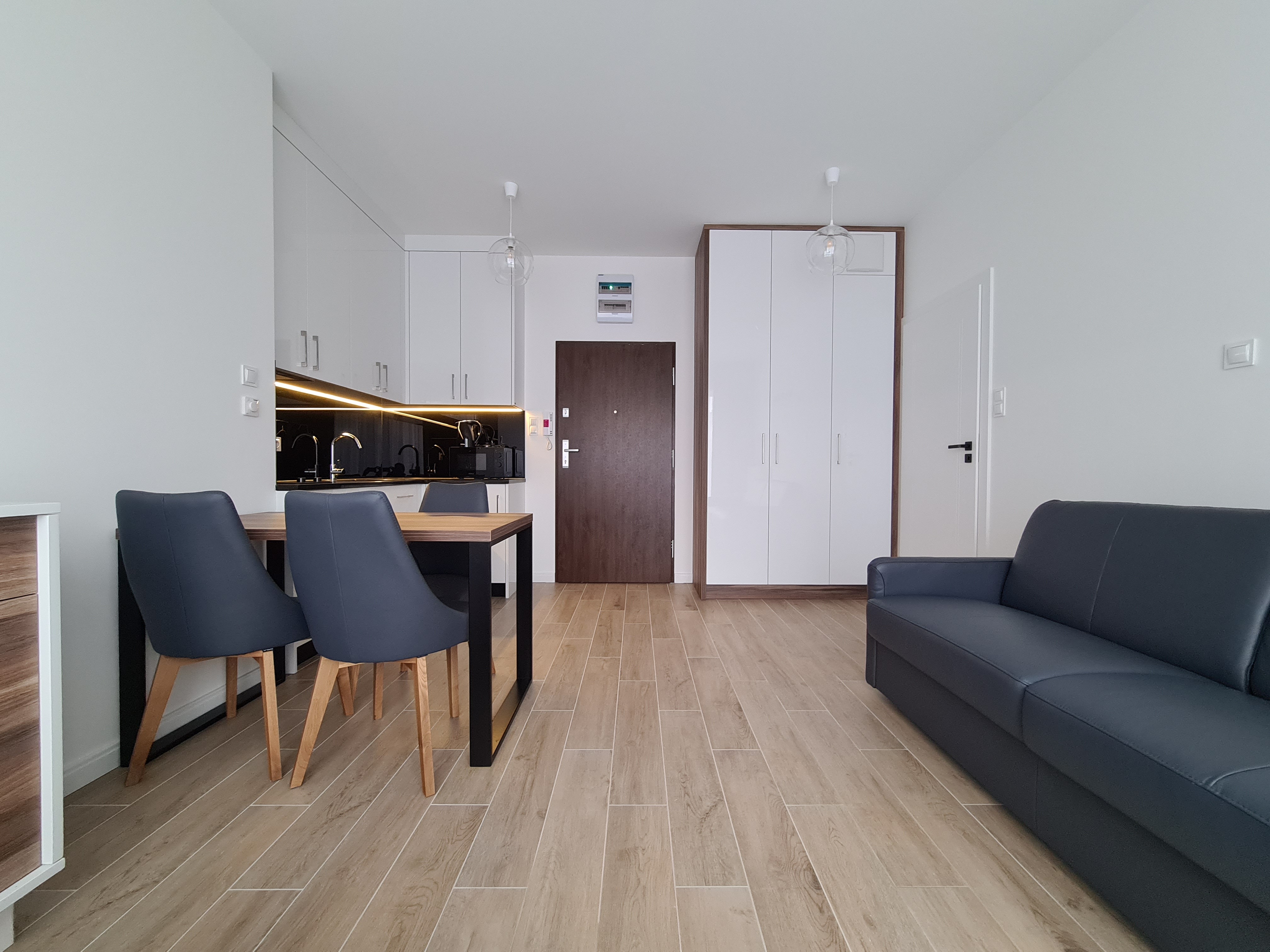 A modern studio apartment located in a new, high-standard building with an elevator at Józefa Siemieńskiego 3 in Ochota. Just a 10-minute walk to Pole Mokotowskie and only 150 meters from the nearest tram stop. Nearby you will find the Medical University of Warsaw and the Faculty of Physics of the University of Warsaw.