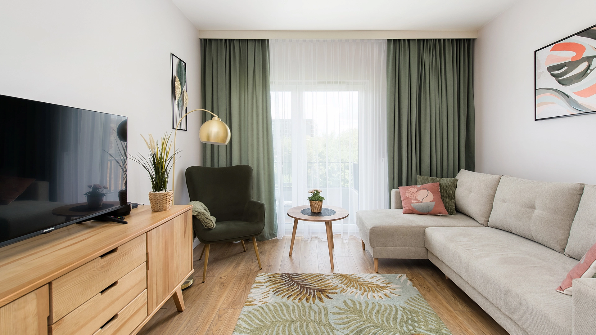 Banacha Apartments are located at the entrance to Krakow from the Warsaw/Kielce side. The area is quiet and peaceful, offering a chance to relax. There are plenty of green spaces around the estate. At the same time, public transport is easily accessible nearby and there is quick access to the Krakow ring road. Getting to the city center takes just a few minutes.