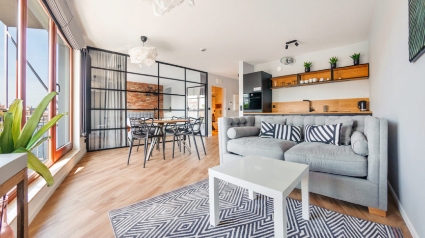 We offer a modern property located on Spichrzów Island right on the banks of the Motława River. The main highlight of the complex is its contemporary architecture. Nearby is the famous Artus Court. It’s easy to reach Long Market and the Neptune Fountain from here. There is a kayak rental close by. On-site, guests can use the swimming pool, sauna, jacuzzi, and gym (open 07:00-14:00, 16:00-23:00). Across from the building is a playground for our youngest guests. Guests can use these amenities free of charge.