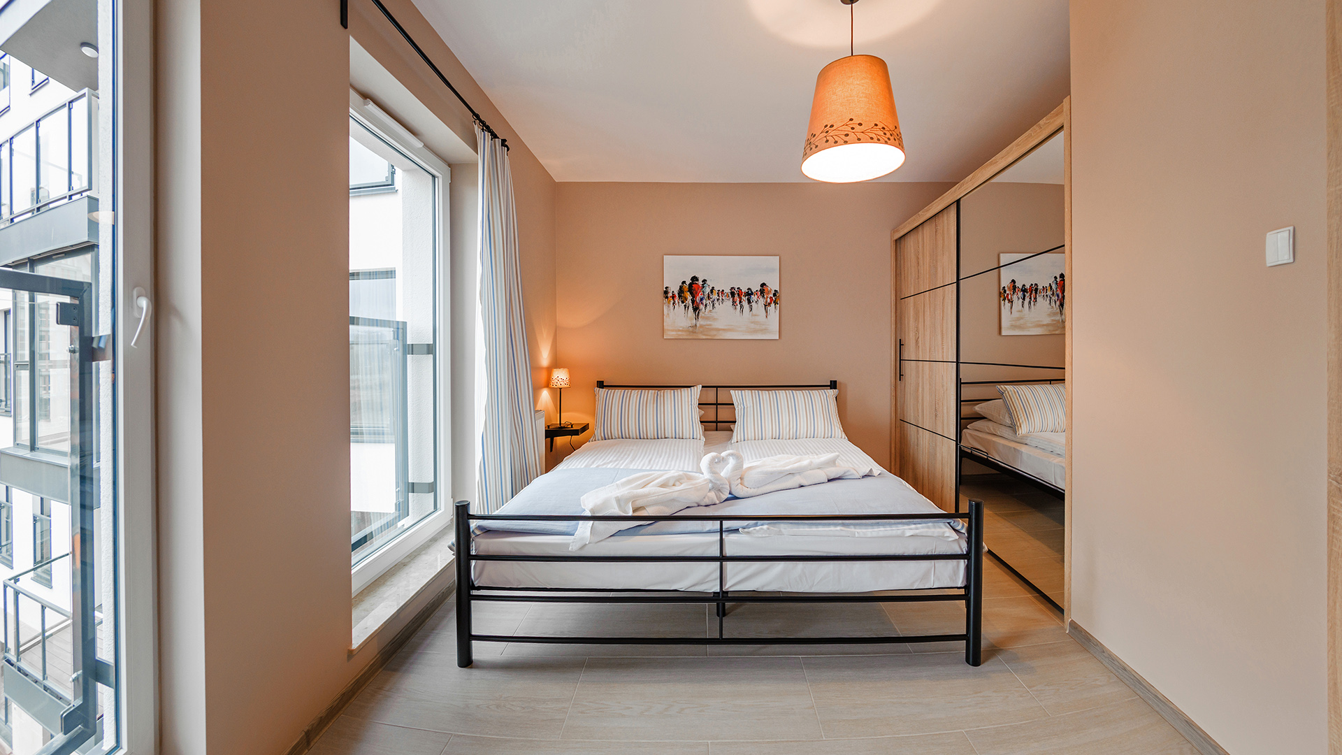 We offer a property located on Granary Island. Its quiet and attractive setting draws many visitors. The main advantage of the estate is its modern architecture. Nearby is the famous Artus Court. It’s easy to reach the Long Market and Neptune’s Fountain from here. Close by, you’ll find the “Żabi Kruk” kayak rental. A safe playground is prepared for the little ones. There is a restaurant on-site. Parking is available in front of the building. Apartments come with fresh bed linens and towels.