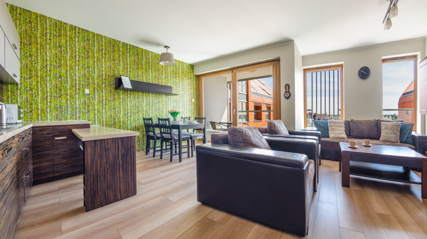 The property is on Spichrzów Island, close to Gdansk’s Old Town, providing easy access to numerous landmarks, museums, restaurants, and cafes. The area features walking trails and green spaces perfect for relaxing. Gdansk is a city rich in history and cultural attractions worth exploring during your stay.