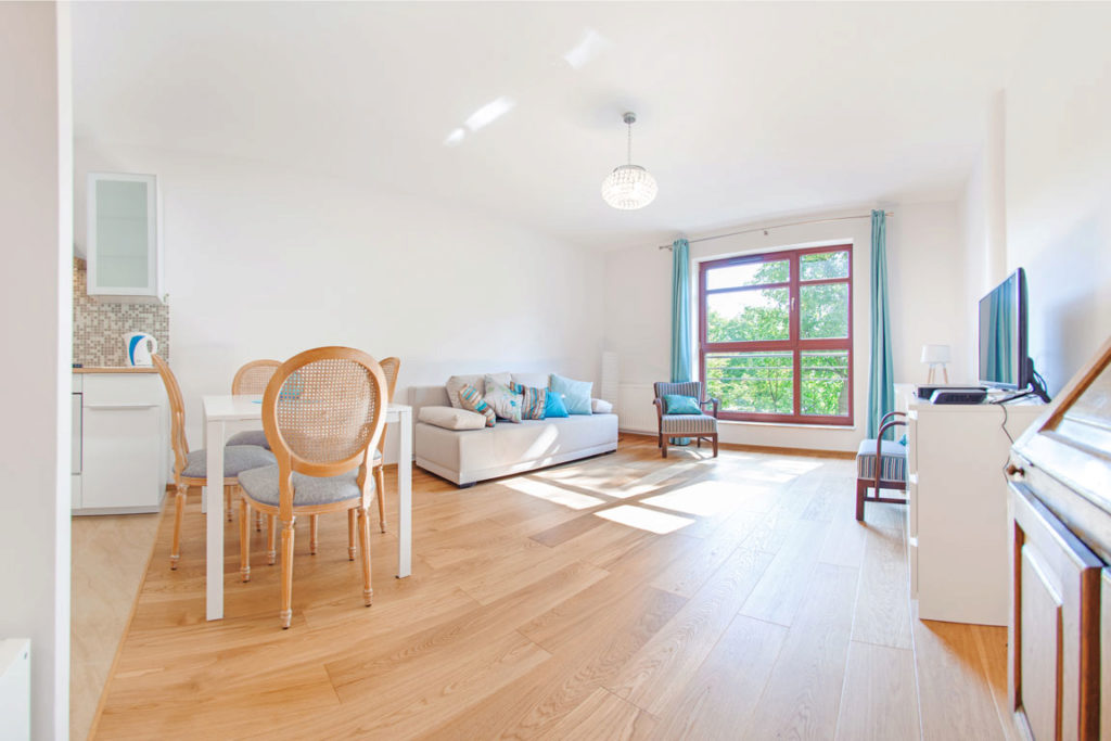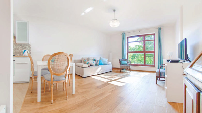 A key advantage of this property is its location. The building sits on the banks of the Motlawa River, in a peaceful and picturesque district near the bastions. Within a few minutes’ walk, you can reach the heart of Gdansk – Długa Street and the famous Neptune Fountain. There is a kayak rental nearby. The property also features a playground for children. The apartments come with fresh bedding and towels.