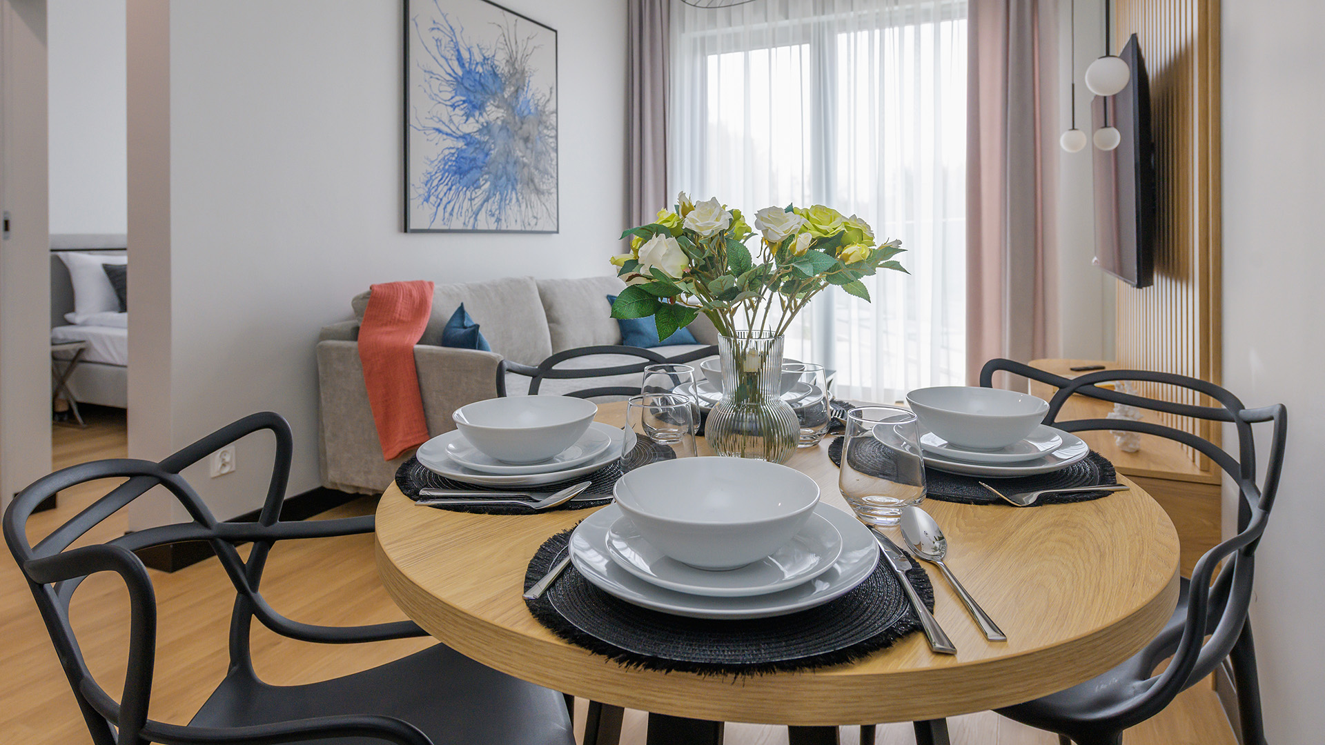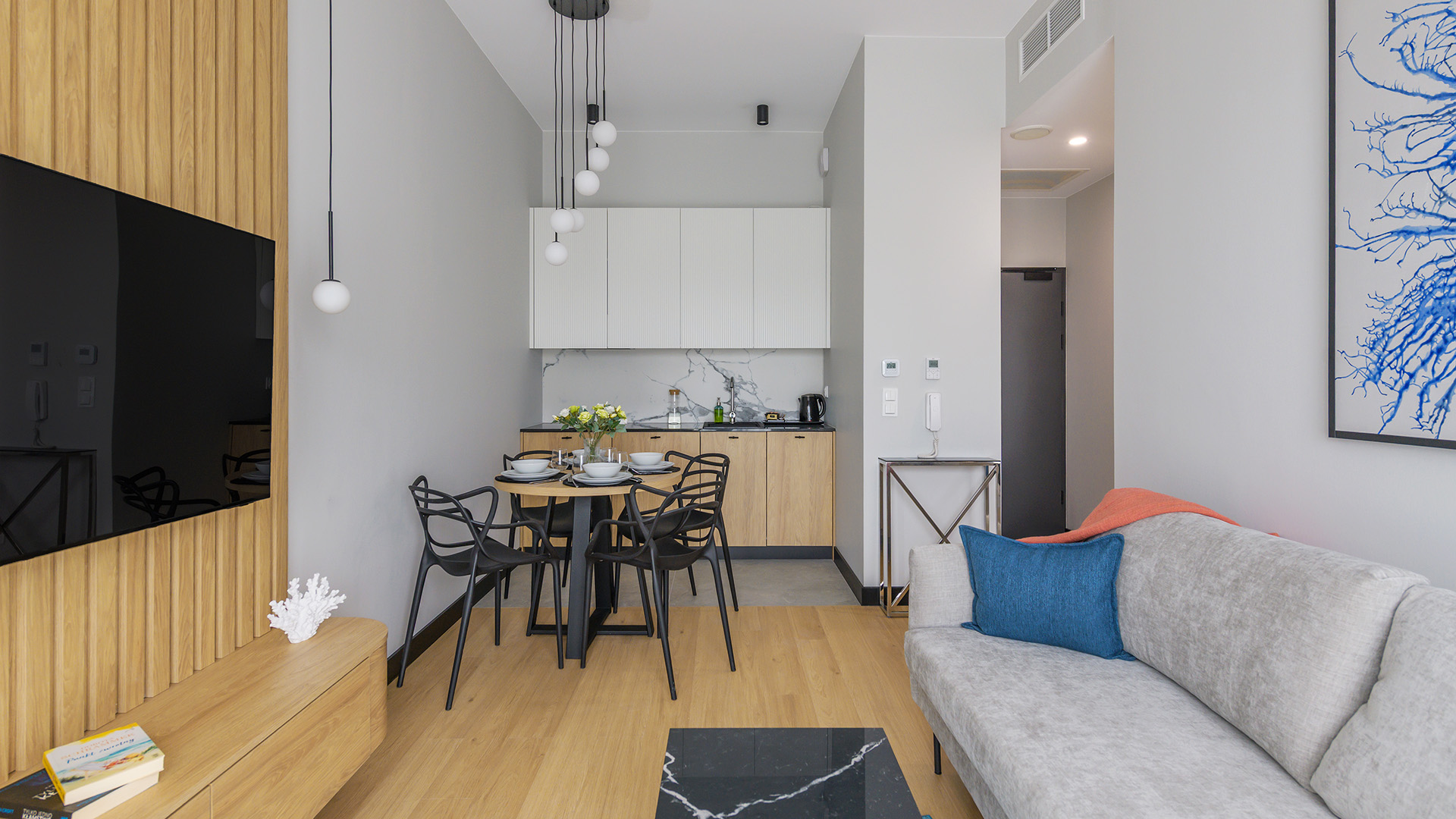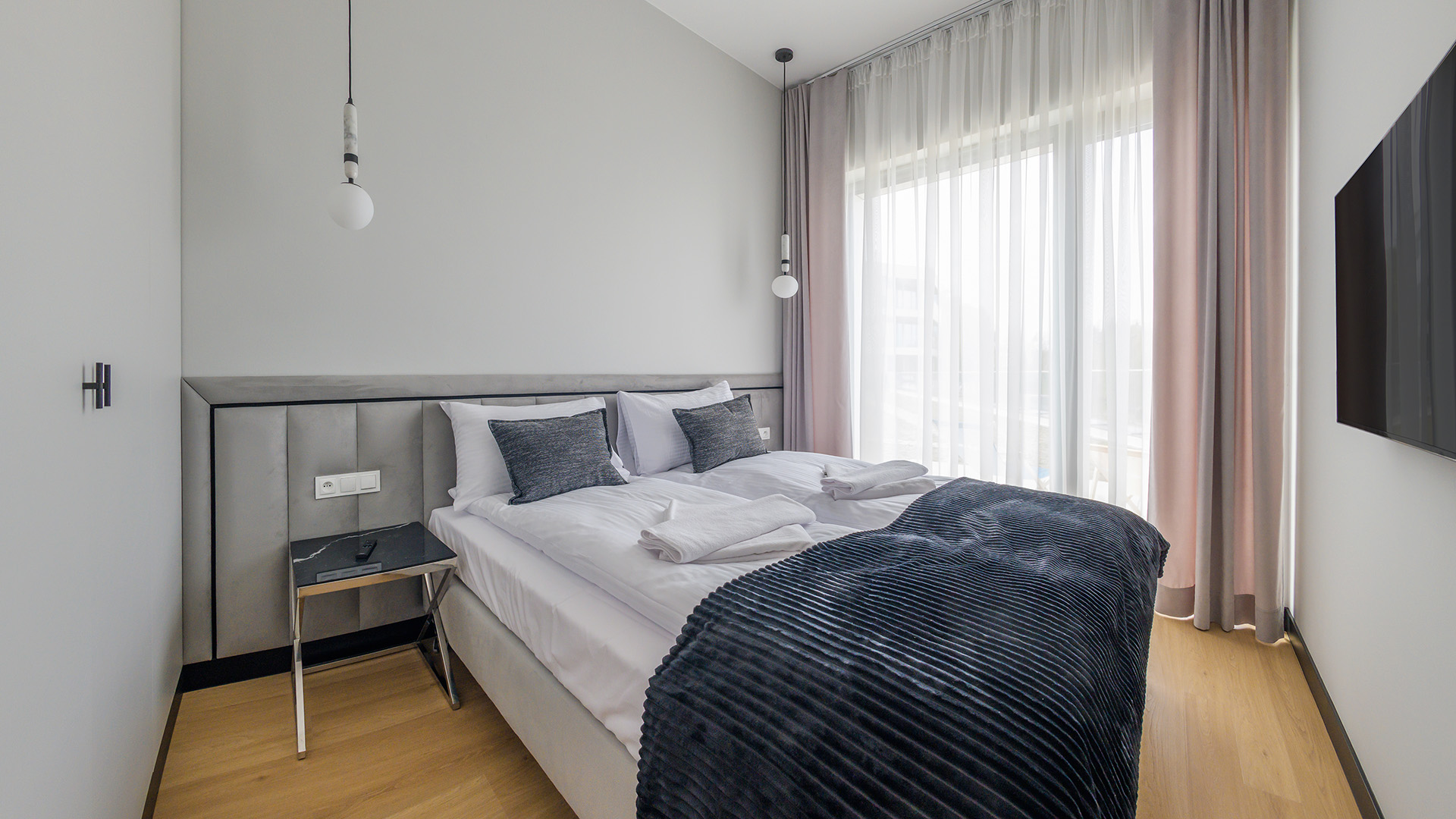 By the Bay is a unique property located on the picturesque Ukiel Lake, offering comfortable apartments with water views. Our location provides a peaceful retreat surrounded by nature, while still being close to Olsztyn city center. Our apartments are modern and fully equipped to ensure your utmost comfort. Each features a spacious living room with a kitchenette, a cozy bedroom, and an elegant bathroom. Additionally, the apartments have air conditioning and are equipped with the latest technology such as cable TV and high-speed internet. Attractions nearby include numerous walking and cycling paths around Ukiel Lake. You can also rent water equipment like kayaks or pedal boats to enjoy an active time on the water. For nature lovers, there are birdwatching spots and viewpoints offering stunning views of the surroundings. Welcome to By the Bay, where everyone finds something for themselves – from relaxation to active leisure. Our property is perfect for a romantic weekend, family holidays, or business meetings.