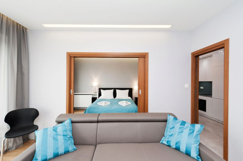 We offer one of the most attractive locations in Krakow. The property is especially popular with our Guests due to its excellent location. The building is situated in the very heart of Krakow. The neighborhood is safe and peaceful. The estate is gated, with two playgrounds for children on the premises. Well-organized public transport provides easy access even to the farthest corners of Krakow. The apartments feature varied decor but all stand out for their high standard and full amenities.