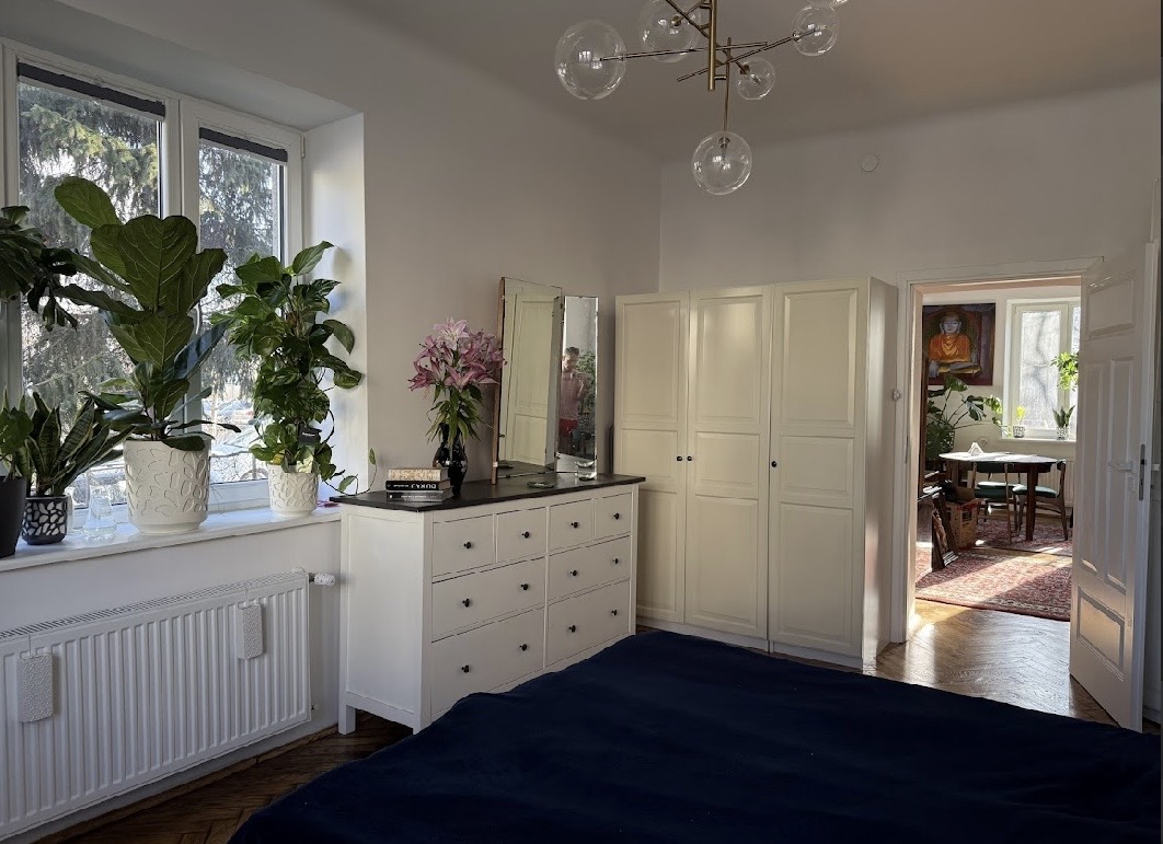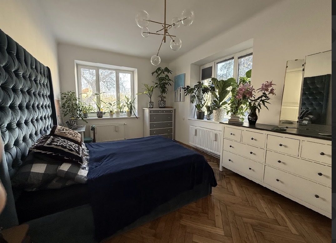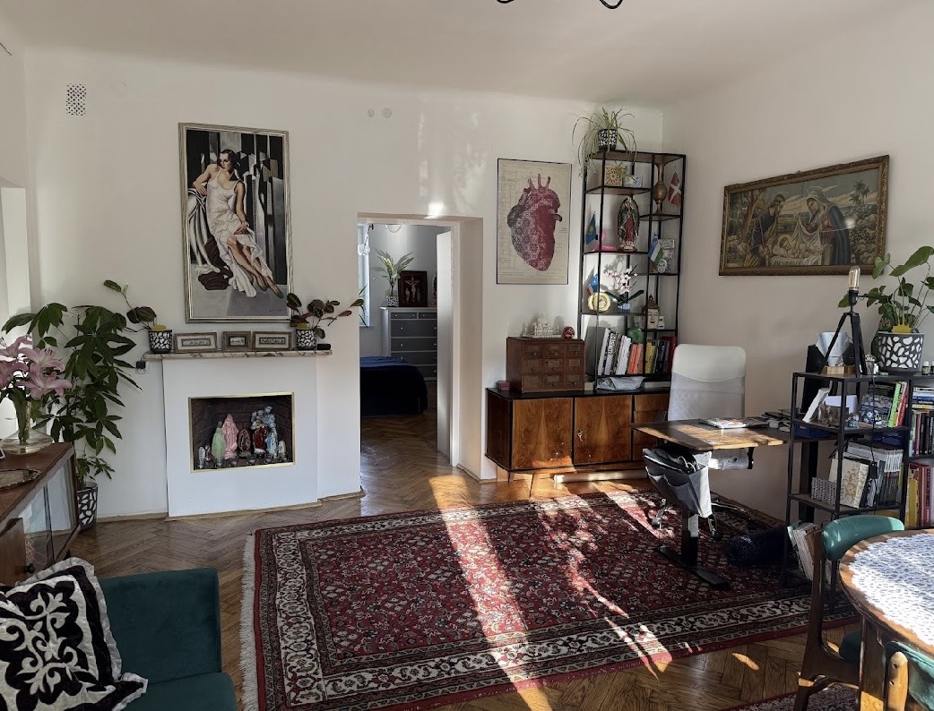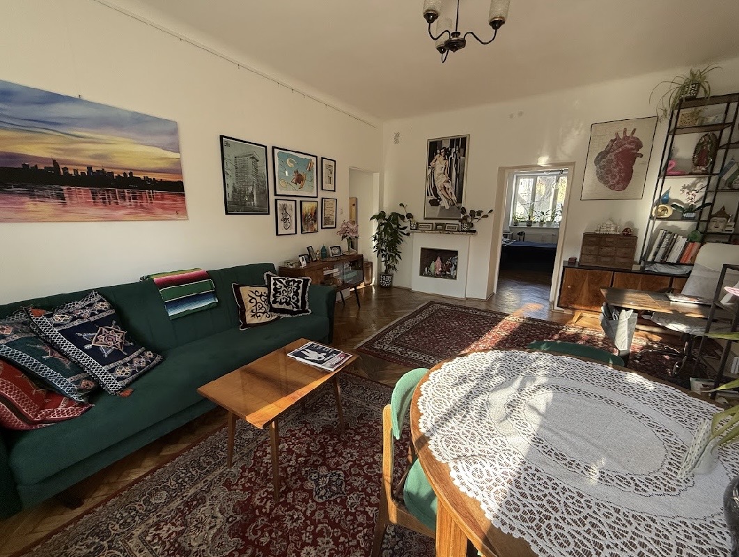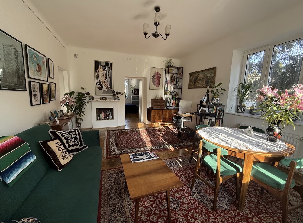 This bright and airy 62 m² apartment is located on the ground floor at Kleczewska 25. The interior offers a generous layout with a ceiling height of 2.9 m, and windows facing three sides, providing plenty of natural light throughout the day.