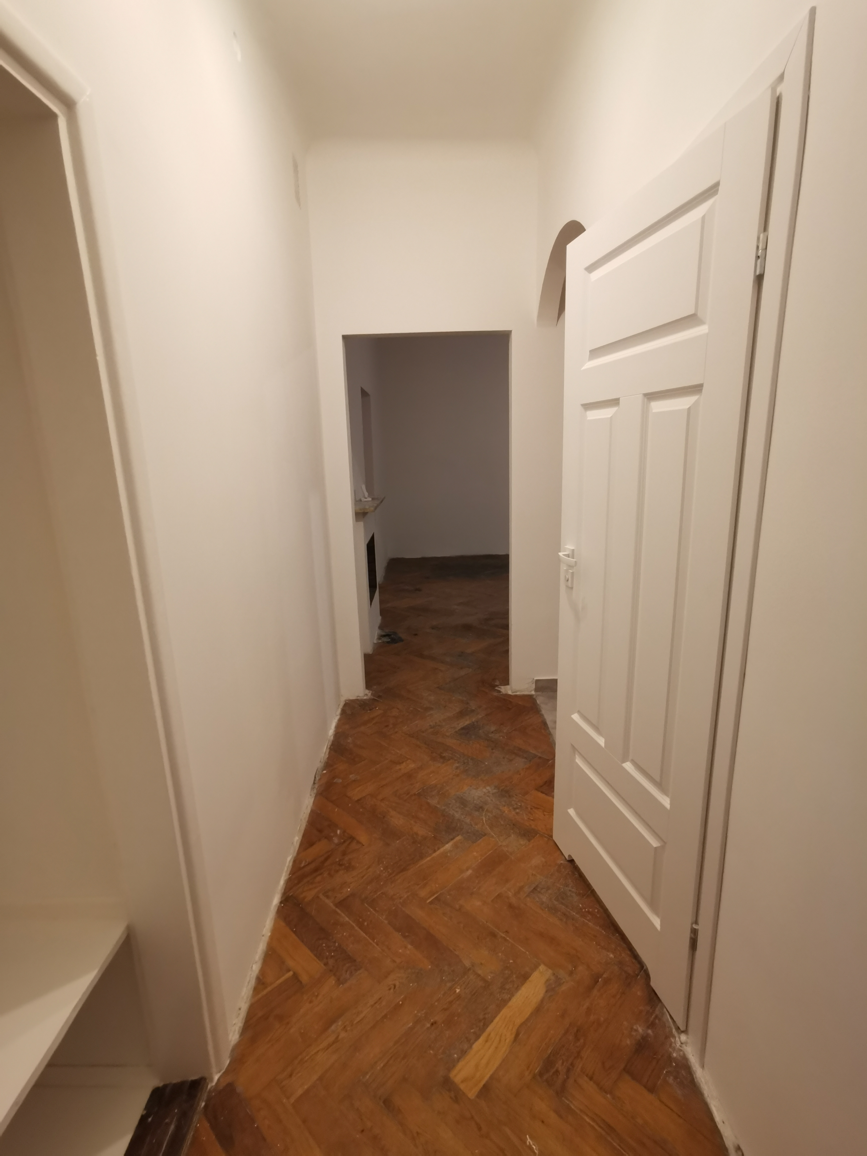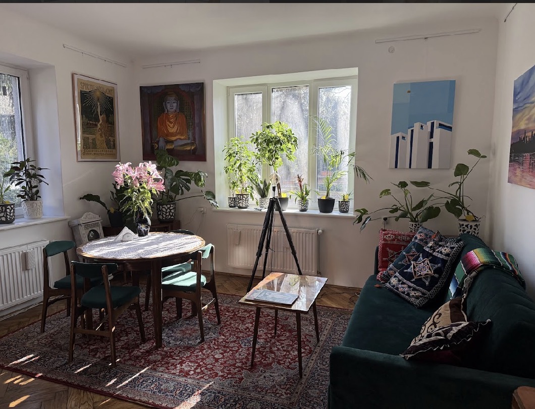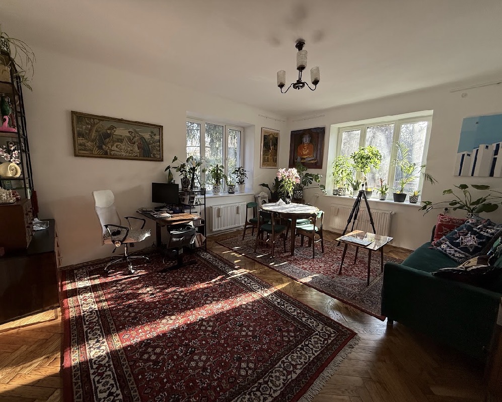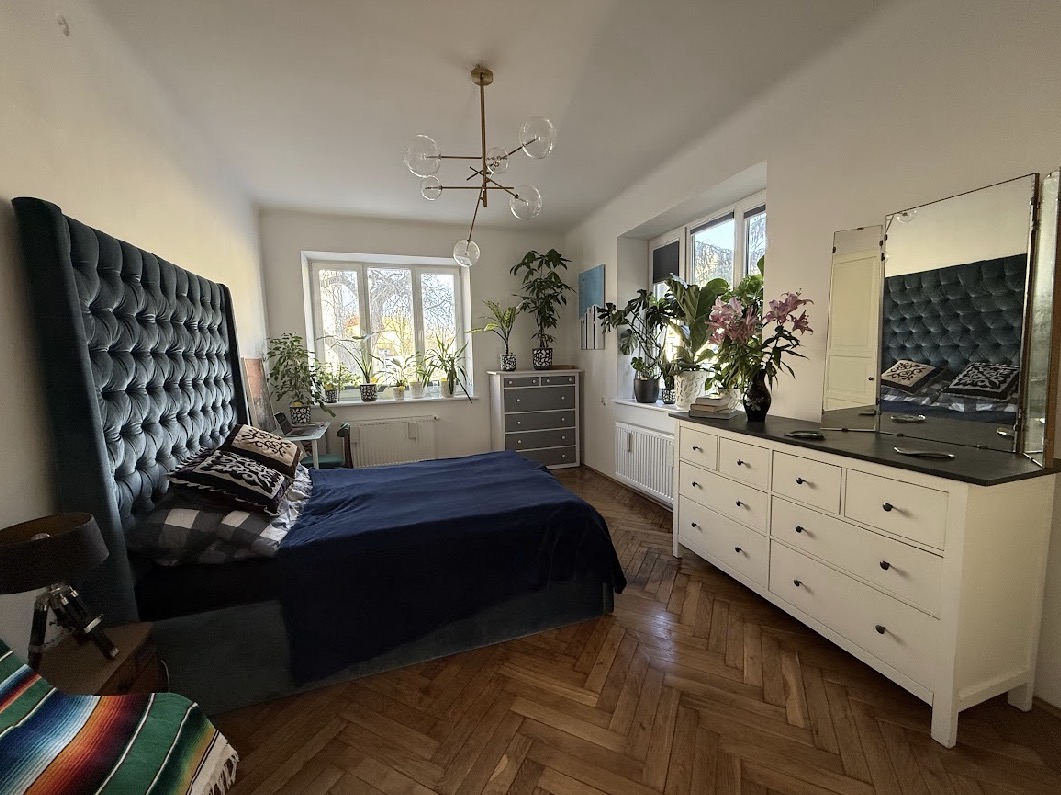 This bright and airy 62 m² apartment is located on the ground floor at Kleczewska 25. The interior offers a generous layout with a ceiling height of 2.9 m, and windows facing three sides, providing plenty of natural light throughout the day.