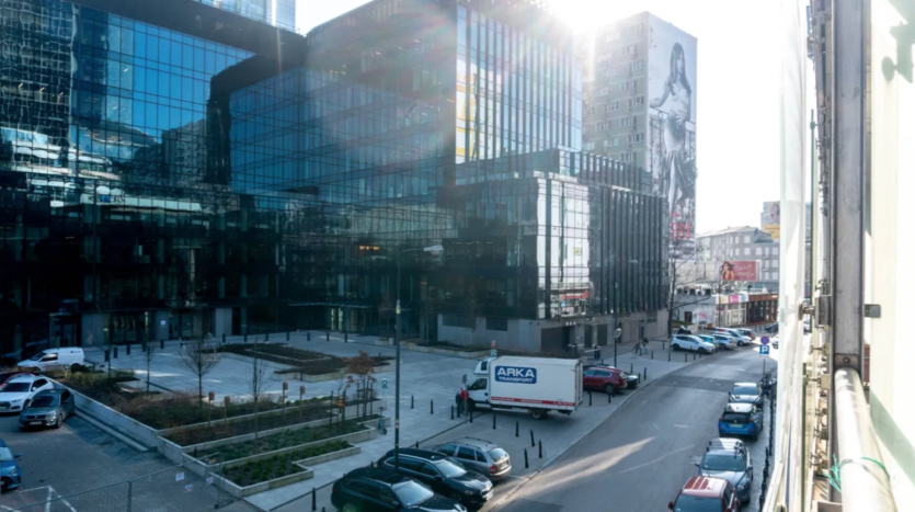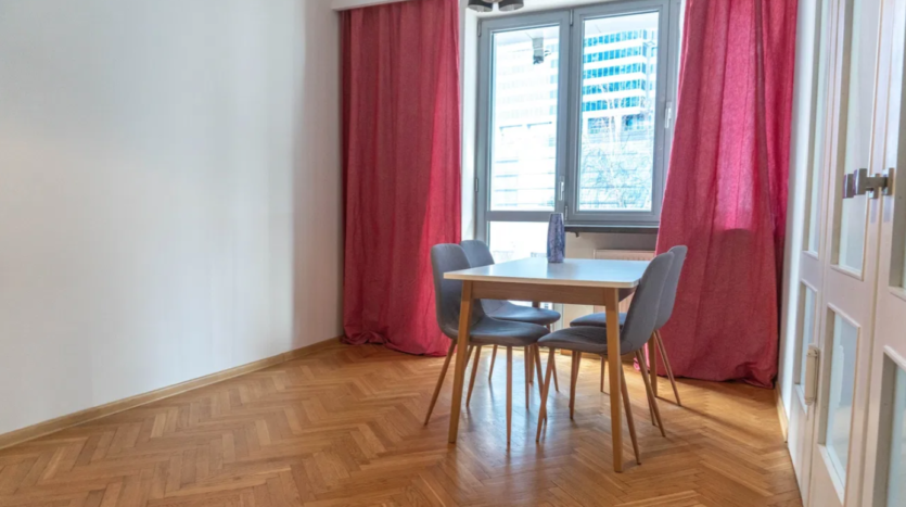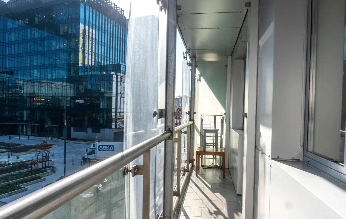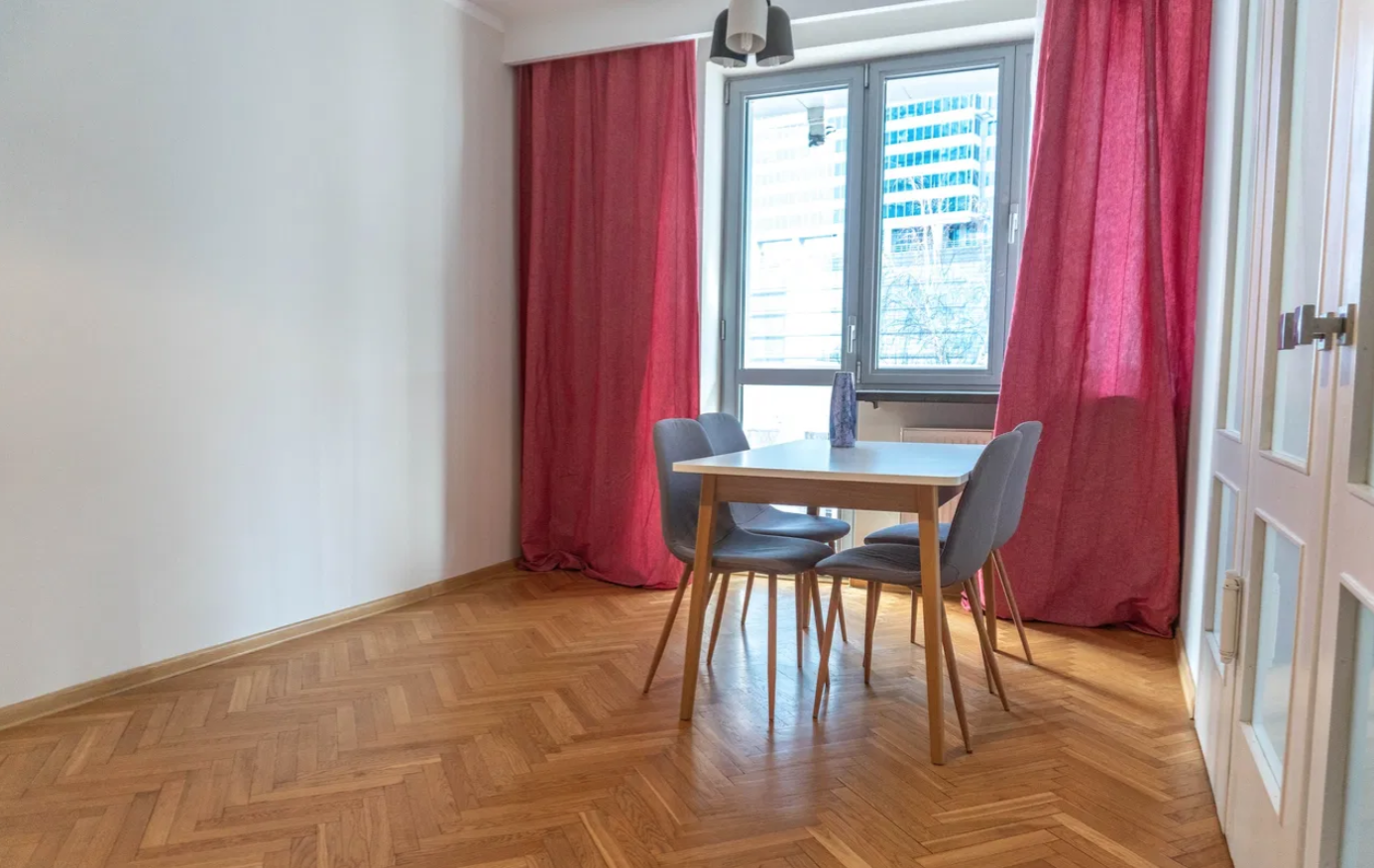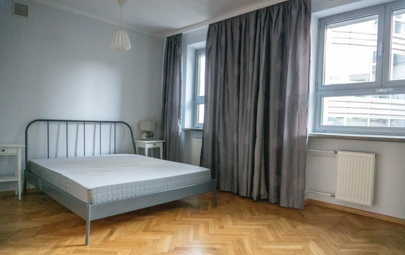 Spacious apartment 75sqm, 1 min walk from Rondo ONZ. The apartment is located on the 2nd floor and has a balcony.