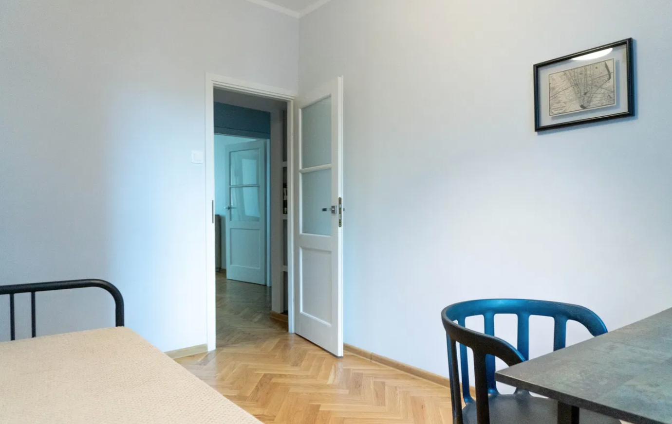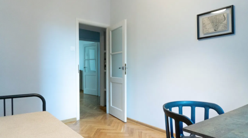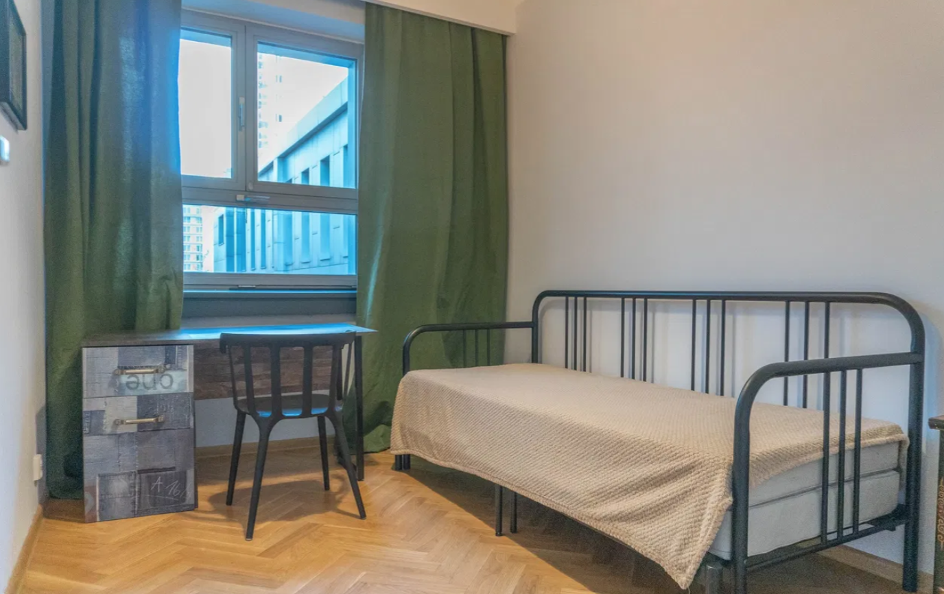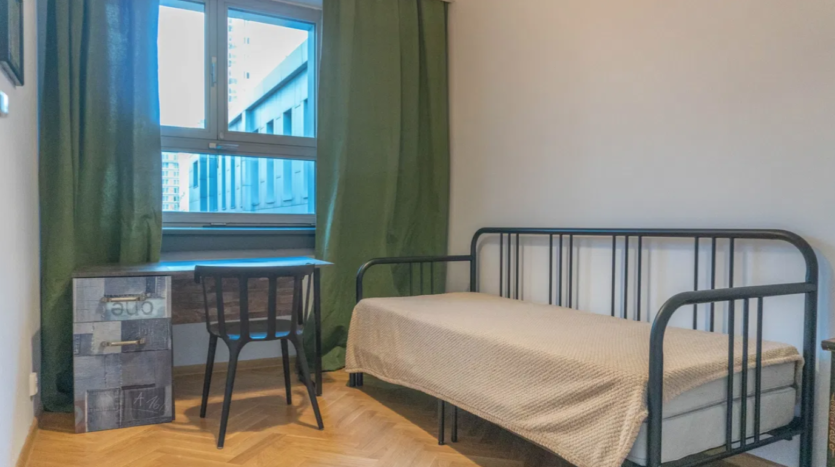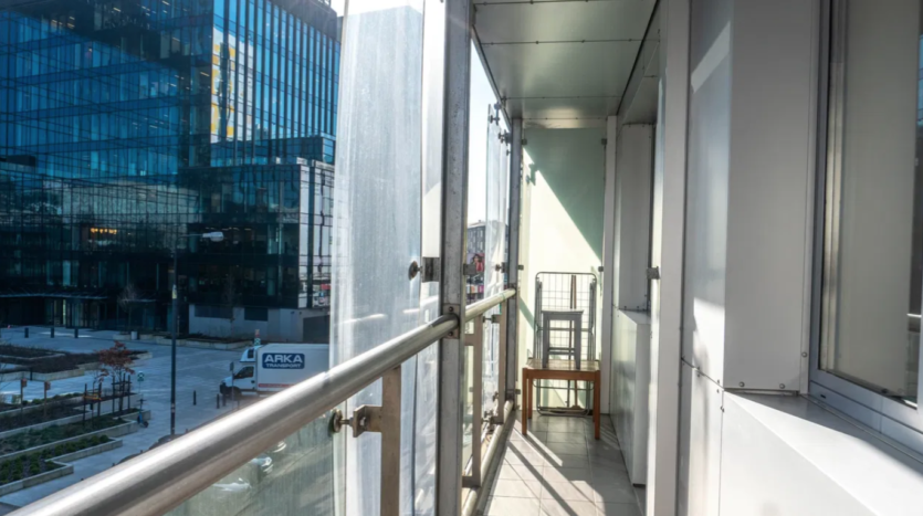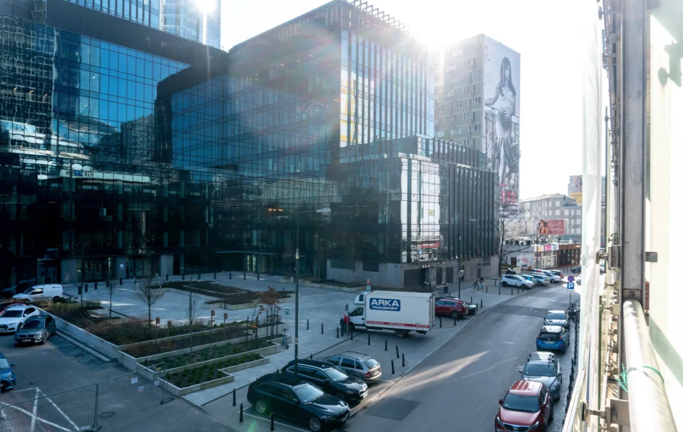 Spacious apartment 75sqm, 1 min walk from Rondo ONZ. The apartment is located on the 2nd floor and has a balcony.